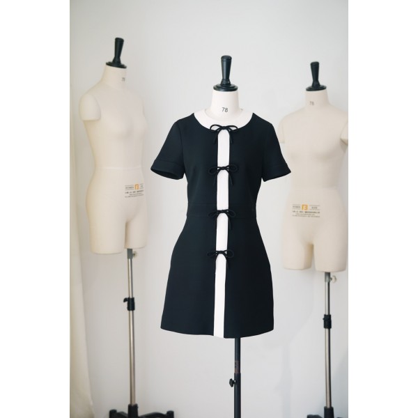 VALENTIN* 23 여름 입체 리본 블랙 배색 원피스 YB 수입 헤비무스 모직 원단으로 세로로 제작 플레어 실크 컷팅으로 속은 부드럽고 볼륨감 있는 리본 포인트 고급스럽고 여성스러움