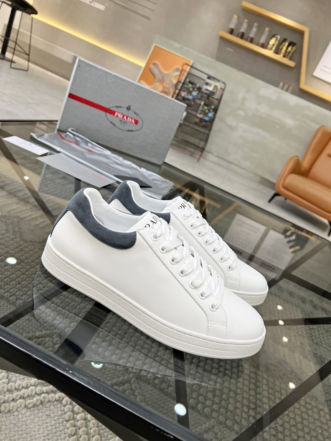 프라다 남성 신상품 스니커즈 매장에서 동시 인기몰이 신발면 이탈리아 수입 소가죽, 고품질 패치워크 물염 소가죽 안감 통기성, 물염 소가죽 깔창 오리지널 전용원판 밑창으로 독점행사성형 바닥이 매우 편하며 오리지널 굽 고품질로 매장을 마음대로 드나들 수 있음