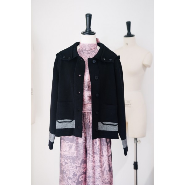DIO* 23 조추 니트 후드 레터링 가디건 그레이와 블랙 울 혼방 니트 원단으로 정성스럽게 제작 탈부착이 가능한 후드 장식이 라탄 체크 패턴으로 세련 CD 버튼 모던 최고 버전으로 출시