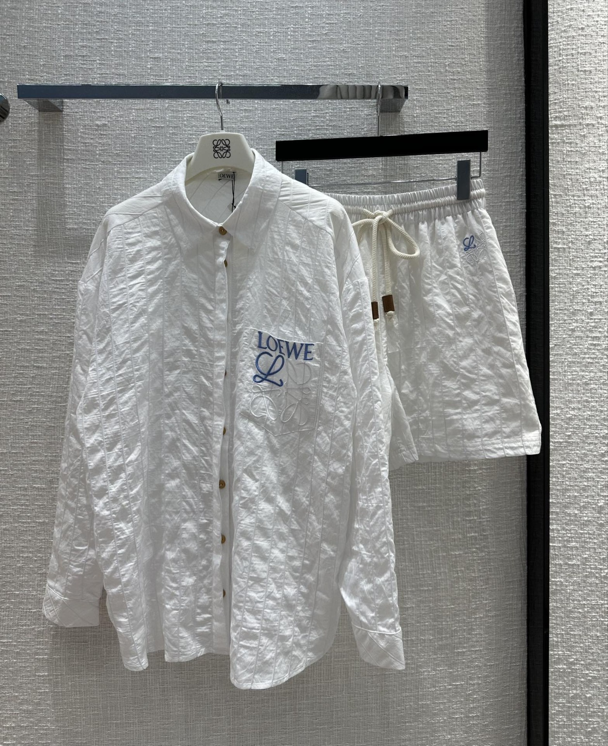 Loew* 23 봄여름 신상품 포켓 배색 로고 자수 레터링 선블라우스 세트 오리지널 커스텀 루즈핏 자외선 차단 셔츠+아우터에 밴딩 반바지 미니멀리즘 프렌치 우아한 나른한 바람 입체 컷팅 핏으로 달콤하고 스타일리시한 소녀 스타일 스트라이프 자카드 원단 맞춤 제작 S사이즈 어깨 가슴둘레 124, 총장 73 허리 64, 힙 110 바지 길이 43