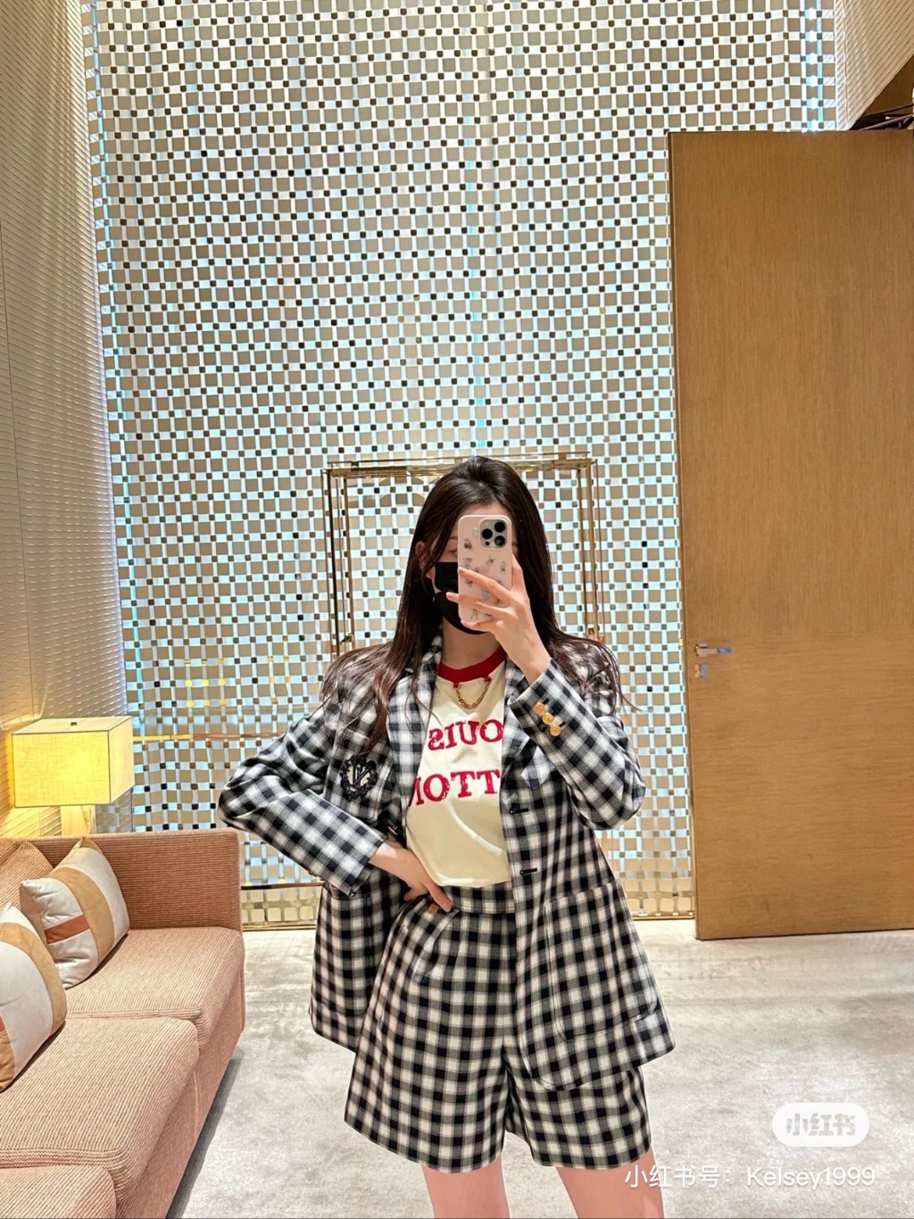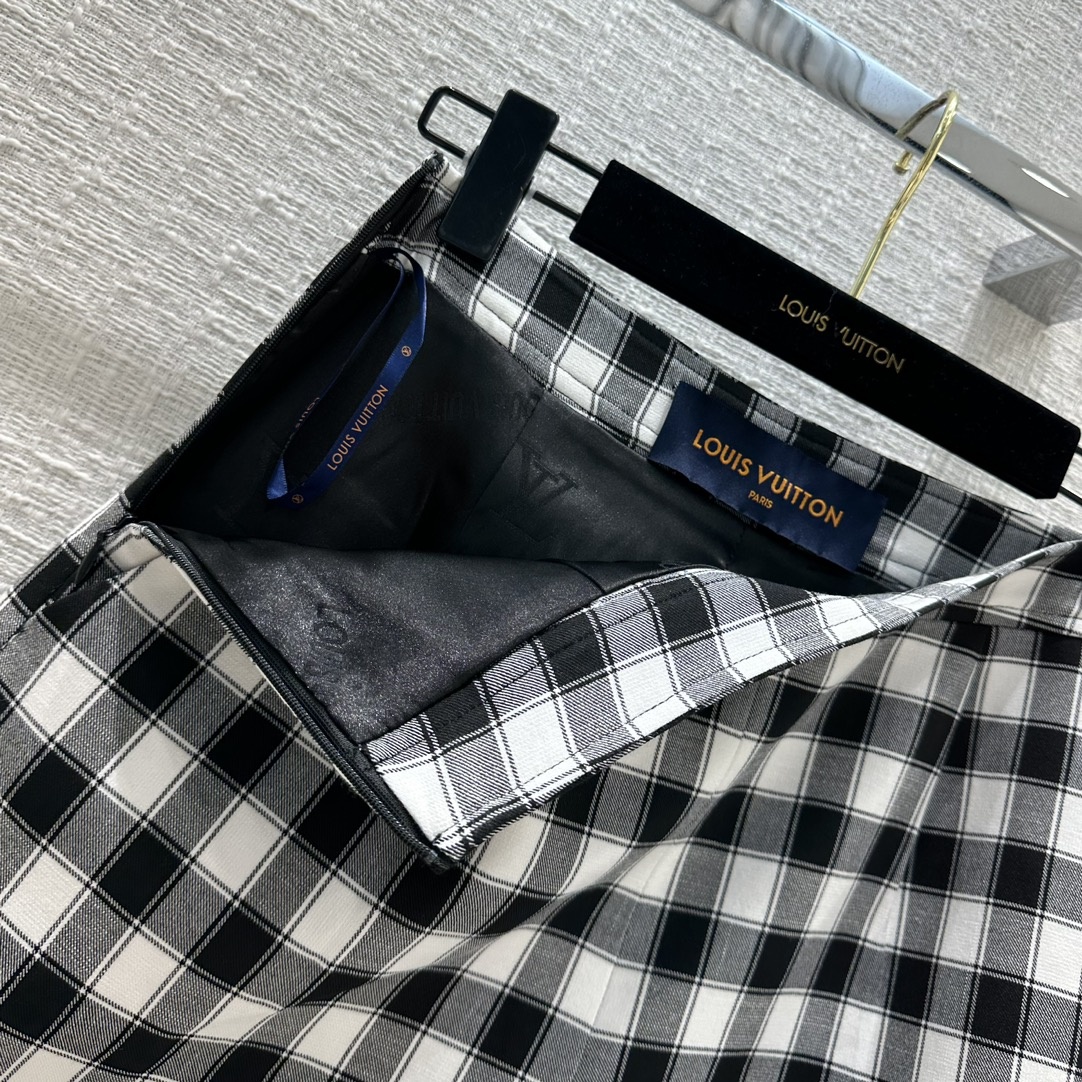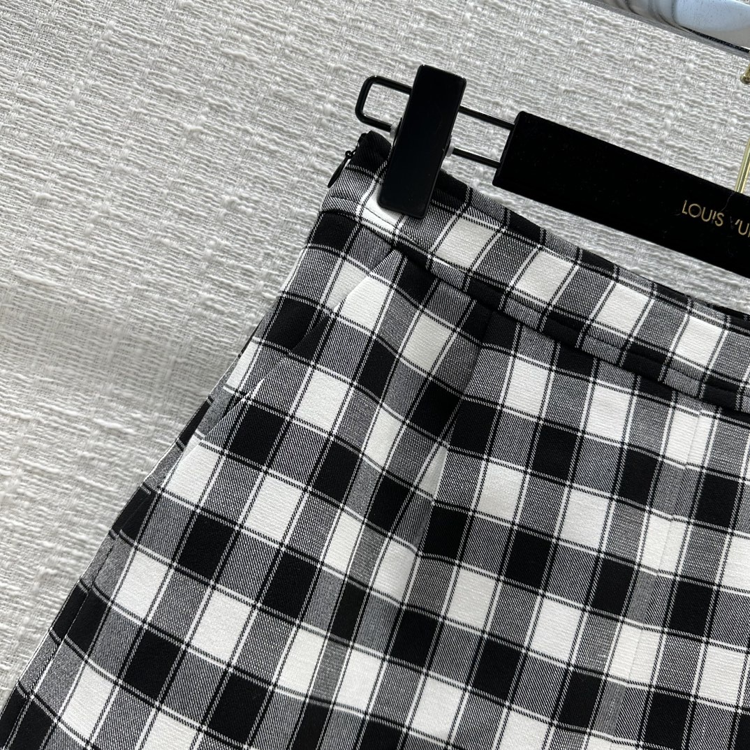 Lou*s Vuitt*n 23 초가을 신상품, 옥스포드 빅 체크 반바지 하이웨스트 와이드 커팅 라인 핏 멋스럽고 모던하면서 고급스러움 오리지널 커스텀 철물 버클 액세서리 S사이즈 허리 66 엉덩이 90 바지 길이 41