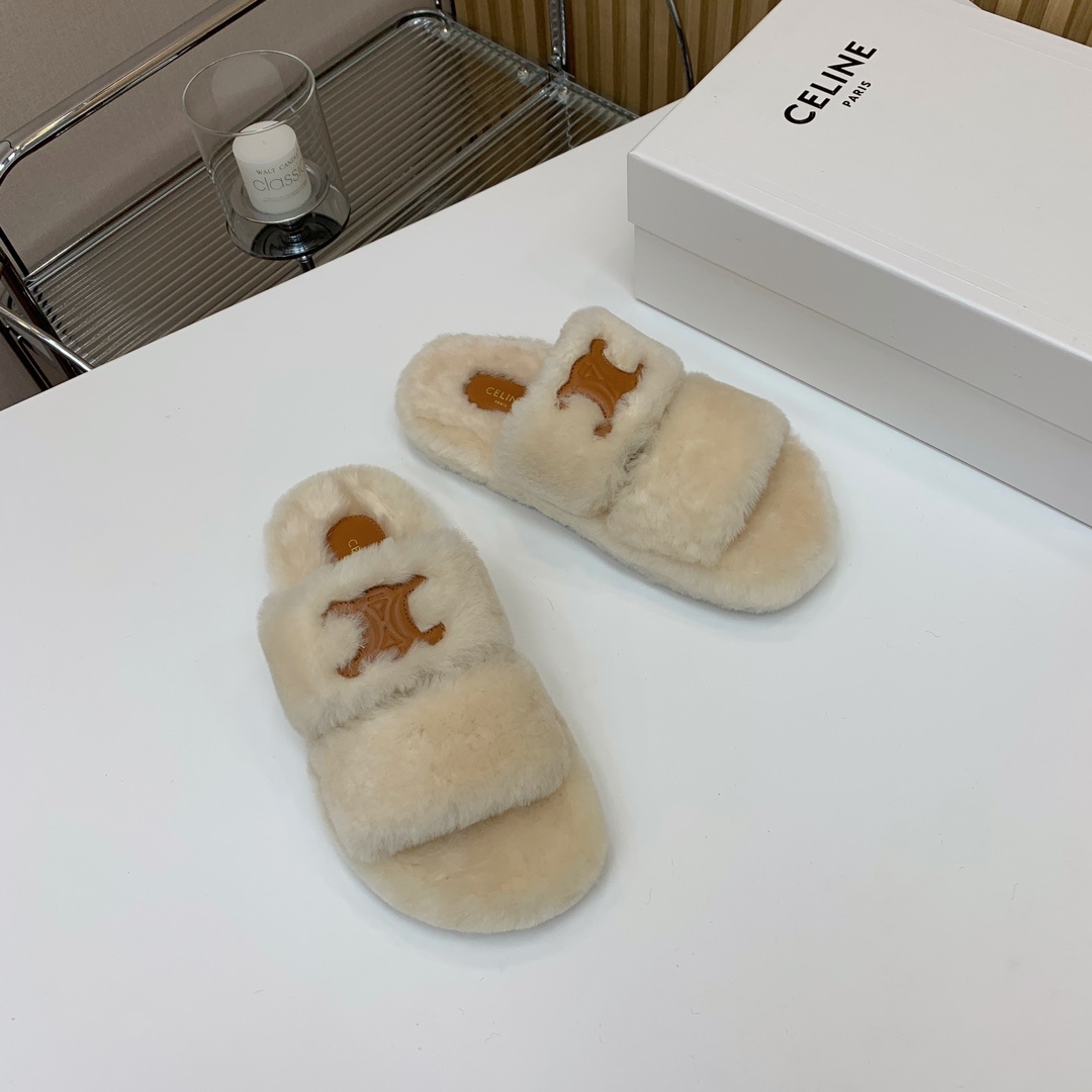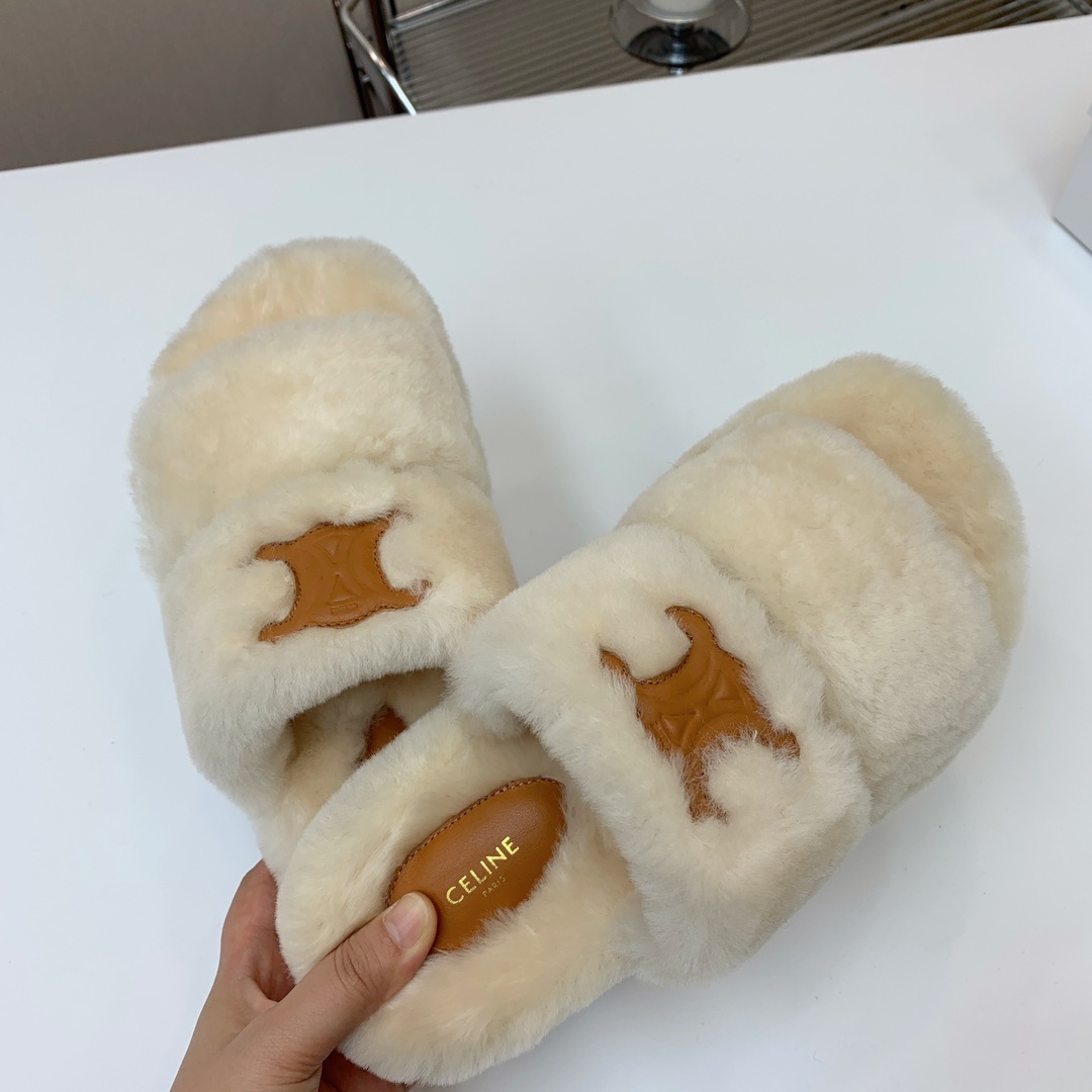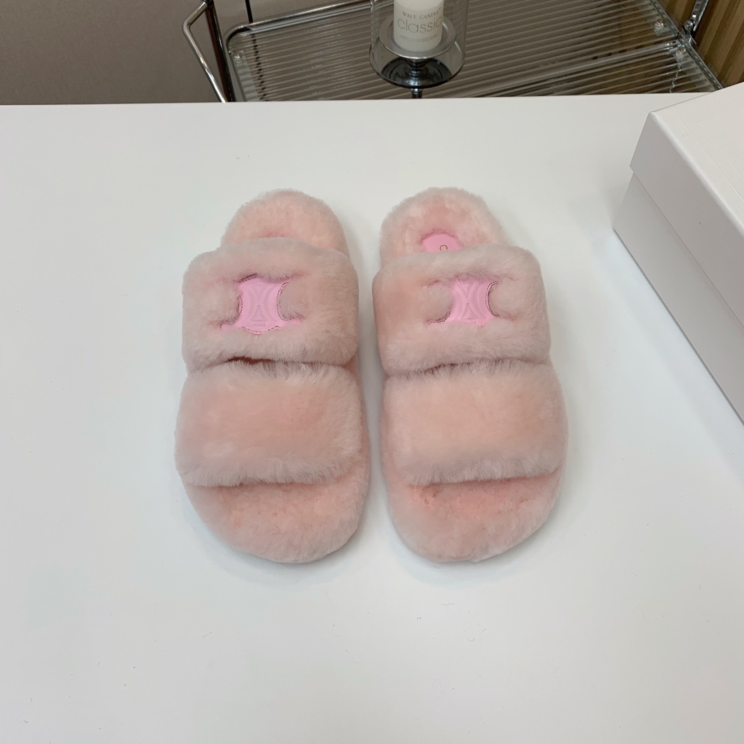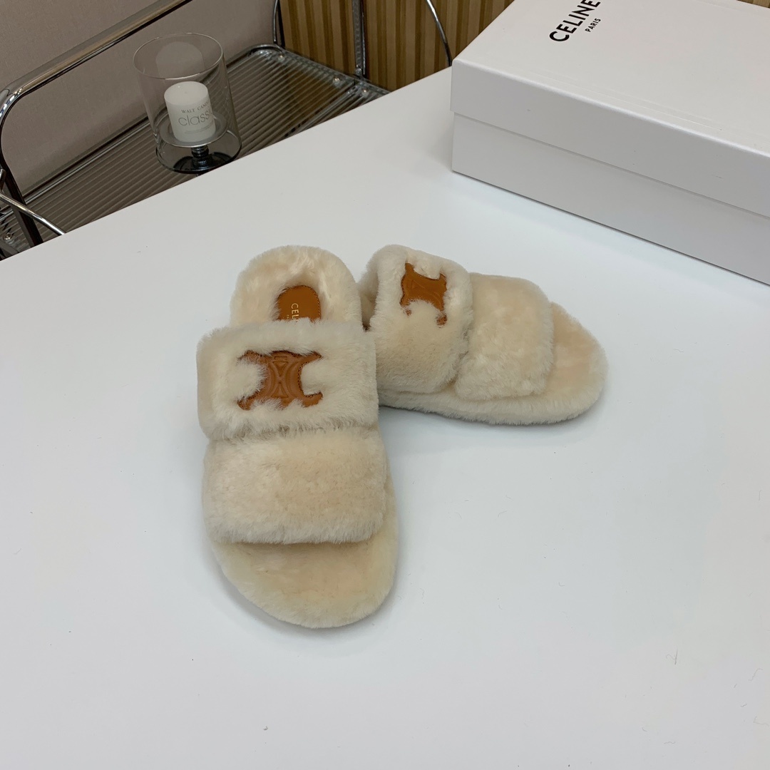 셀린느 양털 슬리퍼 털이 보송보송해서 너무 귀엽고 편함 신발 전체는 유럽 수입 A급 양털을 사용 바닥은 원본과 동일하게 TPU 소재를 사용 바닥이 마모 및 미끄럼 방지