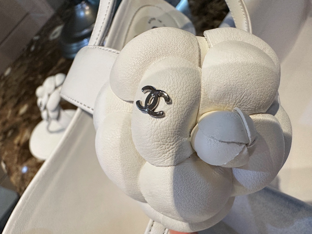 동백꽃 샌들 화이트 심플한 토우바 스트랩이 우아함을 잘 잡아주고 화이트 순수염 무스탕+순강철물+리얼가죽바닥 적당한 호사스러운 아이템
