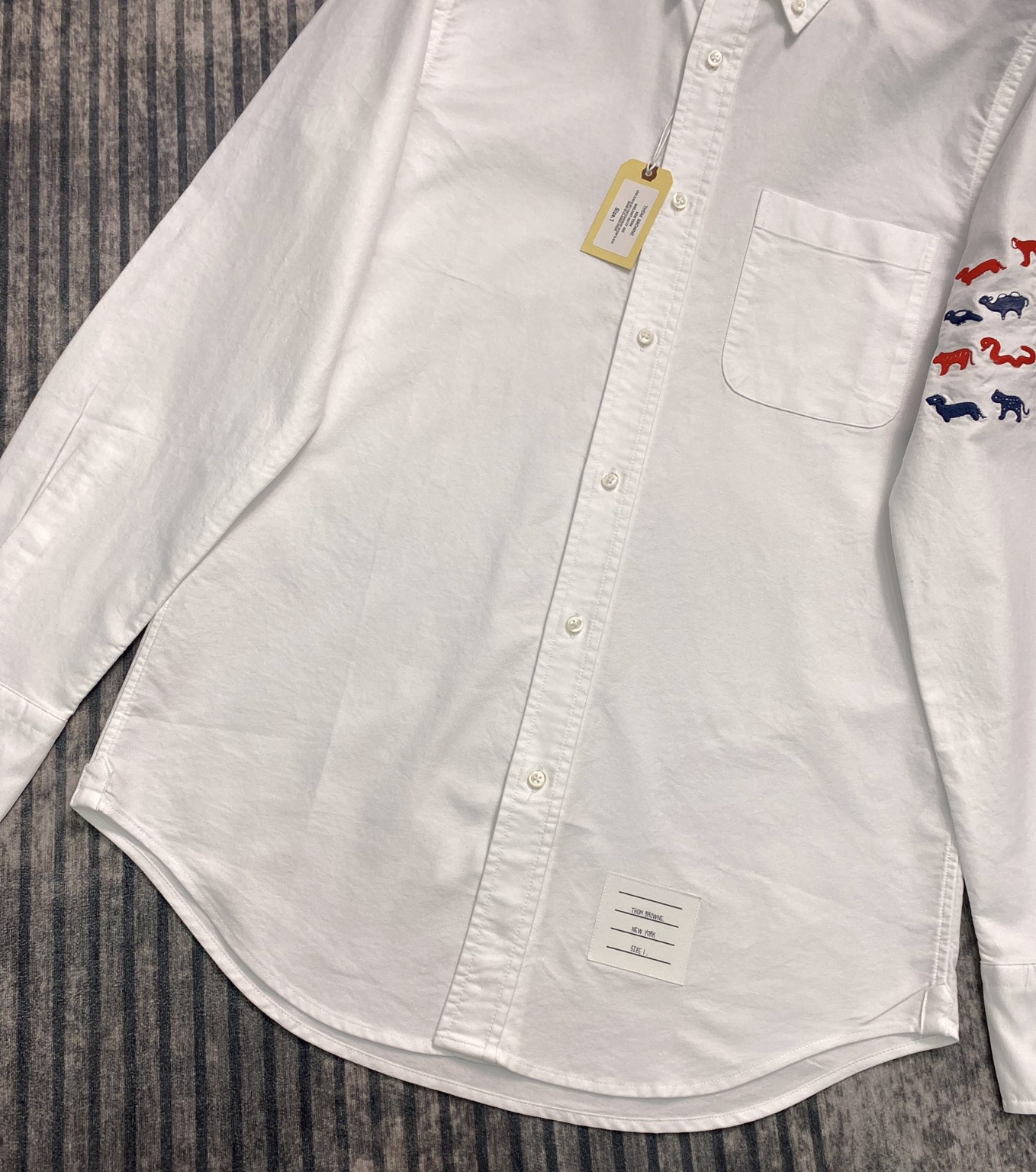 톰브라운 TB애니멀 자수 옥스포드셔츠 기성복 워싱(단추를 모두 박아 함께 세탁) 원단 맞춤 40×21 두 가닥 거즈 일본 수입 심해 채첩 조개 버클 정복은 원판 일치 평차 공법 오리지널 커스텀 옥스포드 스트라이프 테이프 커스텀 넥 후 테이핑 폭 2.3cm 시중 통화 2.5cm 차별화 주문제작 오리지널 화물번호 워셔마크 99% 환원ZP 동물 자수는 일본 다지마 자수기로 밀도 높음