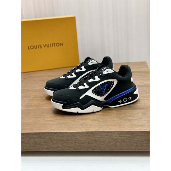Loui* Vuitto* 2022ss 최신 트레이너2 운동화 버질 아블로(Virgil Abloh)가 빈티지 농구화에서 영감을 받아 만든 오리지널 클래식 버전을 재현한 2022 가을 겨울 남성복 패션쇼 소가죽으로 만들고 덧댐과 조절 가능한 벨크로 스트랩을 매치 농구 로고는 신발과 혀로 표시되어 있으며 모노그램 꽃은 고무 아웃솔을 장식 소가죽 벨크로 스트랩 조절 가능 콤비네이션 키높이