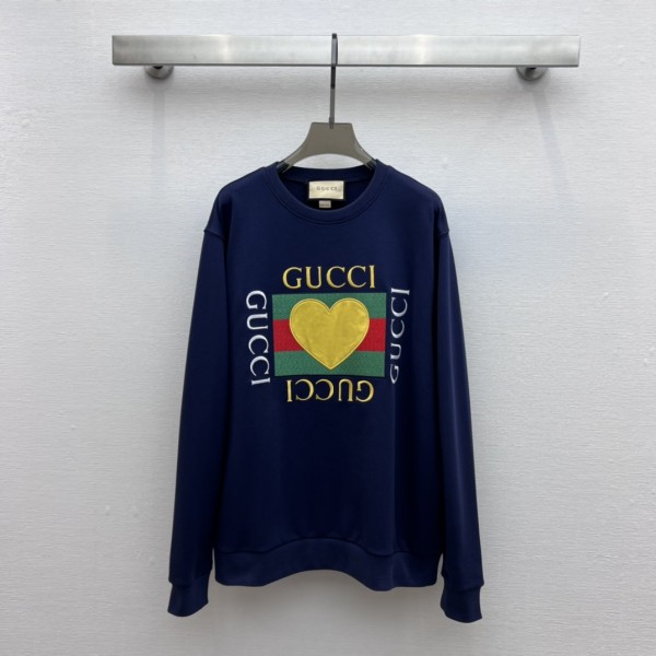 Guc*i 23 칠석데이 한정판 하트 레터링 라운드 맨투맨 가슴의 눈에 띄는 빈티지 로고 자수가 중심에 포인트 하트 패치 정교한 자수 배색+하트패치 일반 버전과 차별화되는 클래식하고 볼만 한 스타일 패션 피플들은 길거리에서 사진을 찍기에 매우 편리함