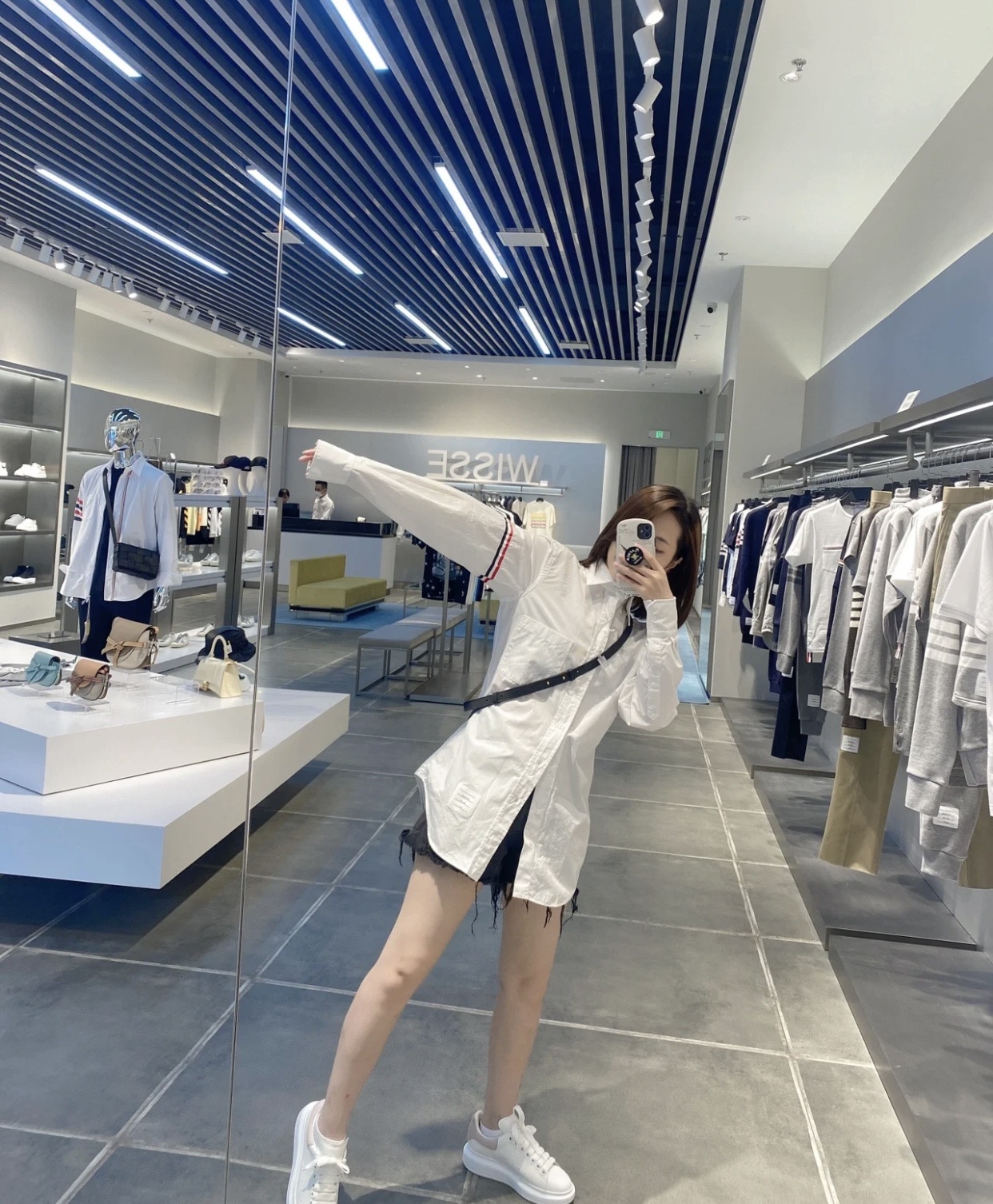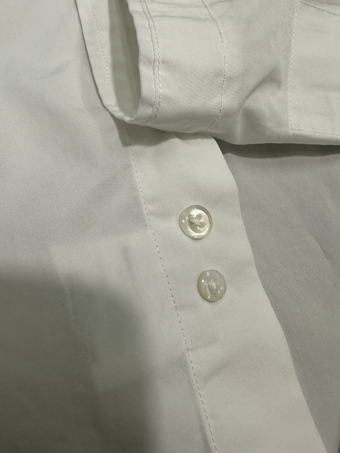 베이직 더블 버튼 포플린 셔츠 업그레이드된 포플린 원단, tb스타 제품 심플하고 깔끔하며 캐주얼하고 편안하게 스타일링 가능 가장 클래식한 면으로 된 실로 짠 포플린 원단으로 면 원단에서 비교적 얇고 가벼운 원단으로 다른 원단보다 밀도가 높고 실키하며 주름 방지 능력이 뛰어나며 촉감이 실크에 가까운 진정한 최고급 원단 천연 자개 단추, 디테일이 품위를 결정 시장 제품들은 비용 절감을 위해 값싼 플라스틱 버클로 대체하여 전체 옷의 품격을 떨어뜨림