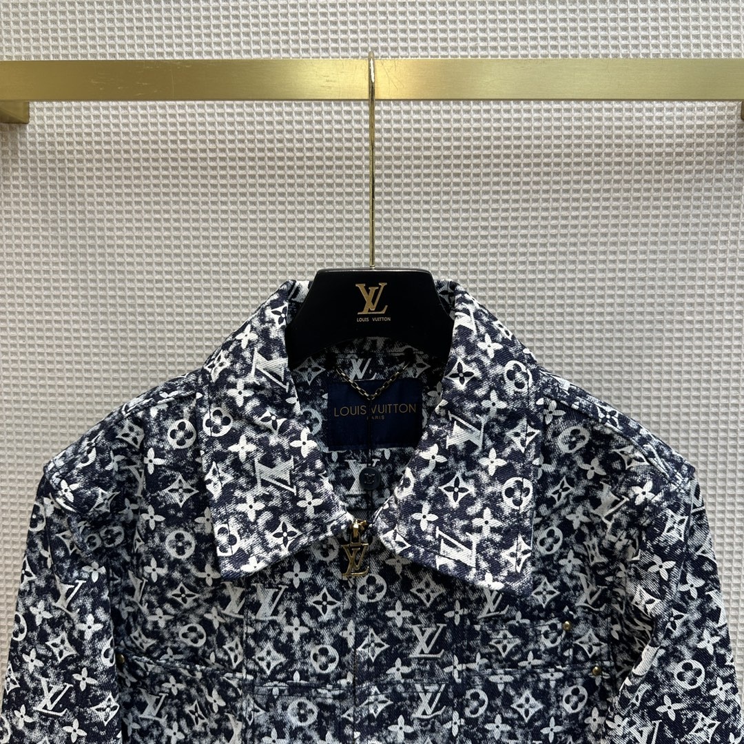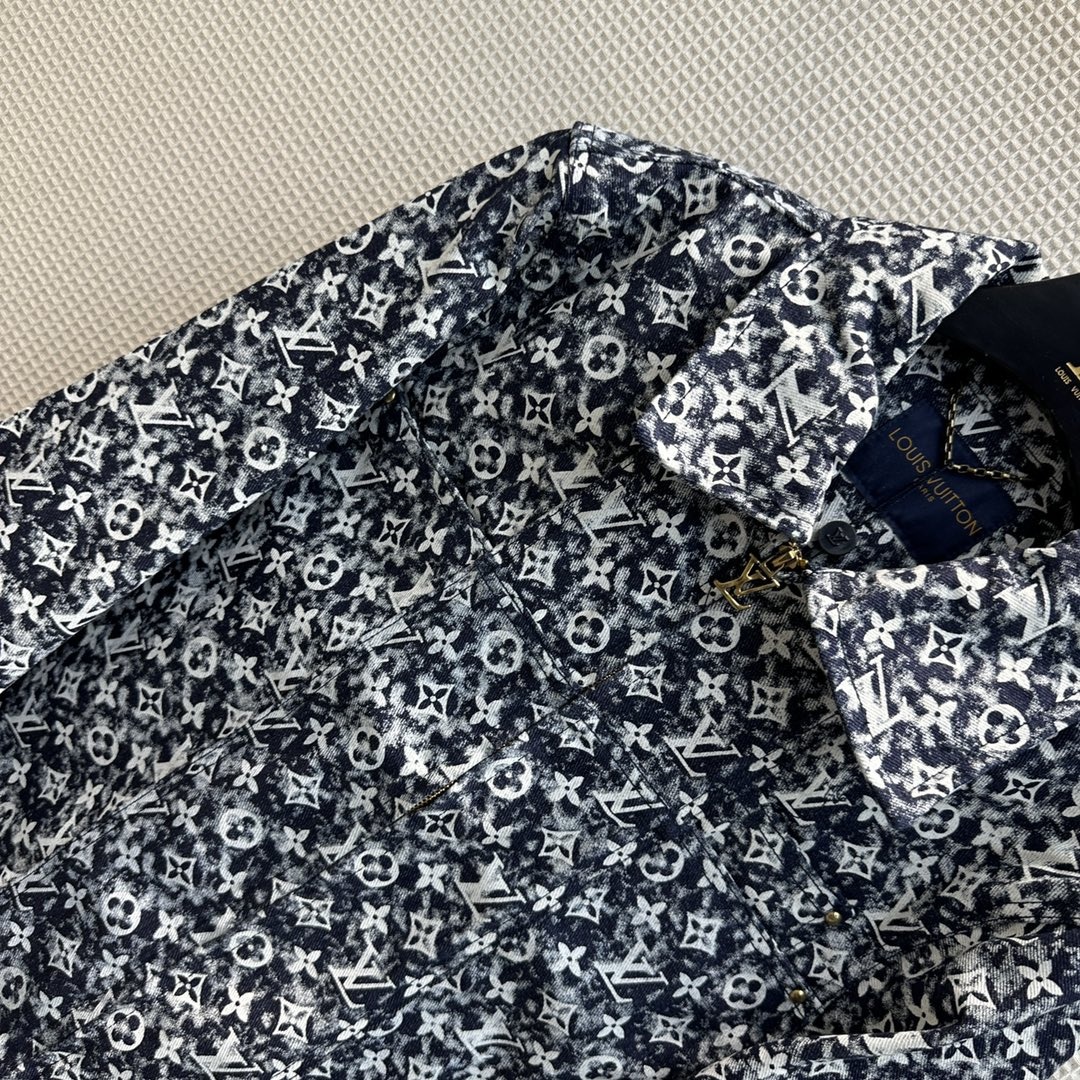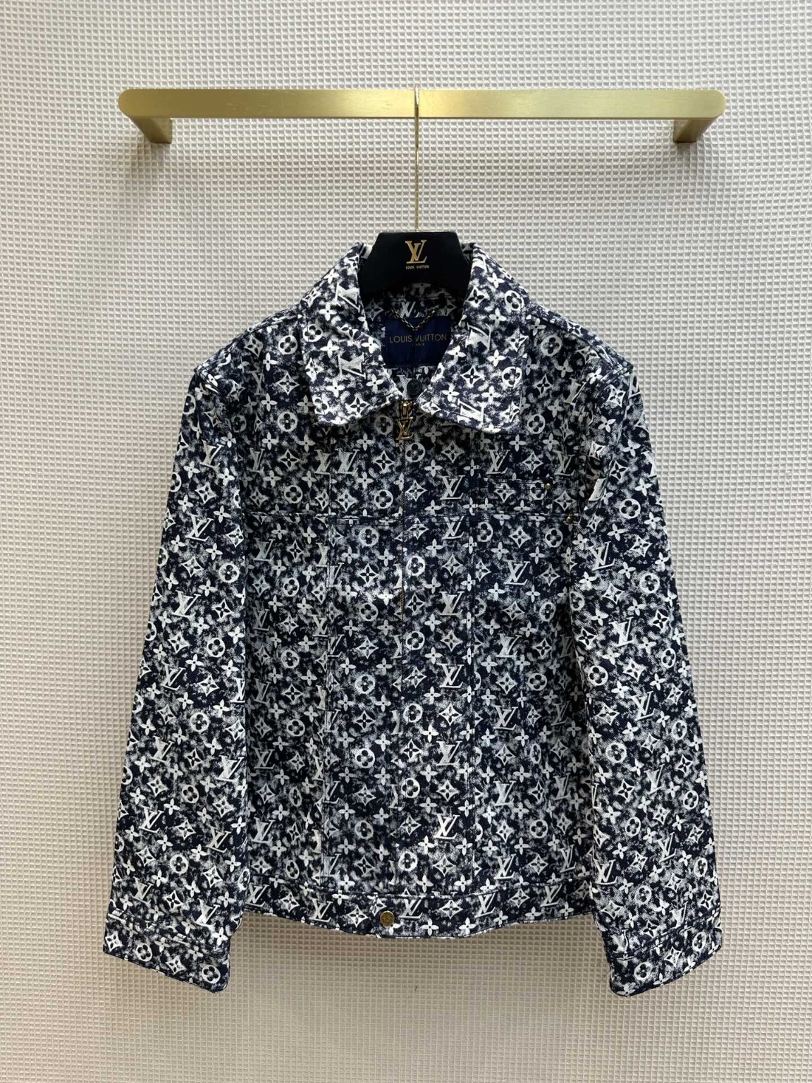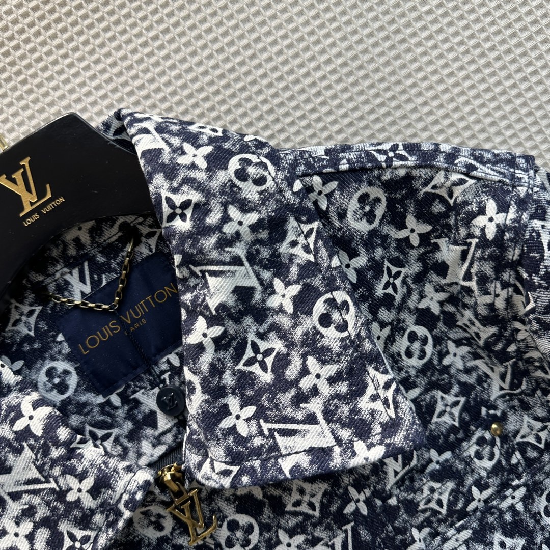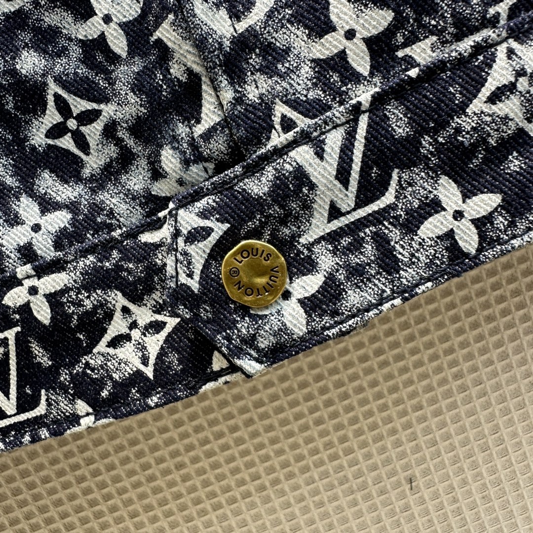 LV 23 가을겨울 모던한 느낌의 로고 프린트 데님코트 캐주얼 코디 추천, 자체 멋스러움 코코스윗 클래식 노화패턴 보청색 바탕에 화이트 로고로 매치