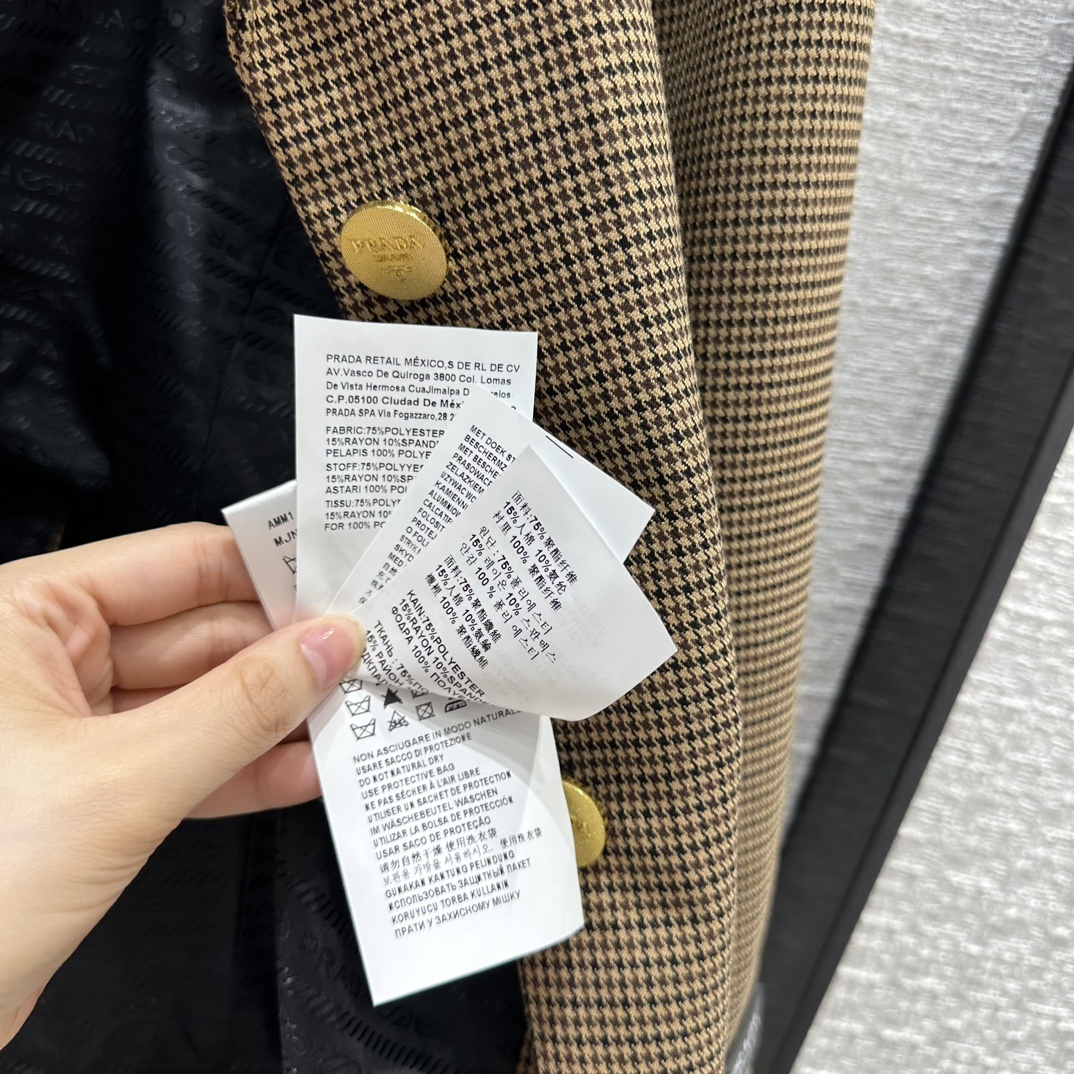 pr*da 23 초가을 신상 싱글 하운드투스 정장 코트 블랙 레더 골드 버클 장식이 모던하고 격조 있고 캐주얼하면서도 시크하며 입체적인 컷팅으로 허리를 잡아주는 핏 수입 원단의 질감이 최고 커스텀 자카르 안감, 퀄리티 디테일을 보세요