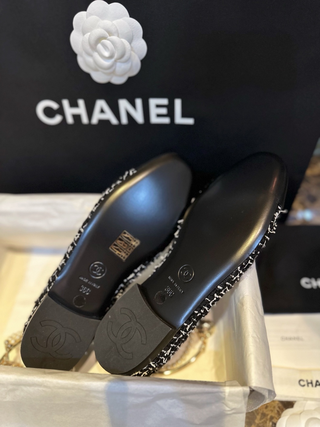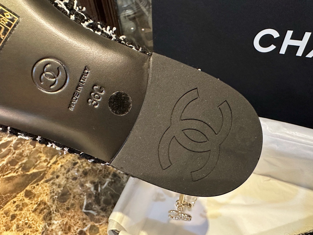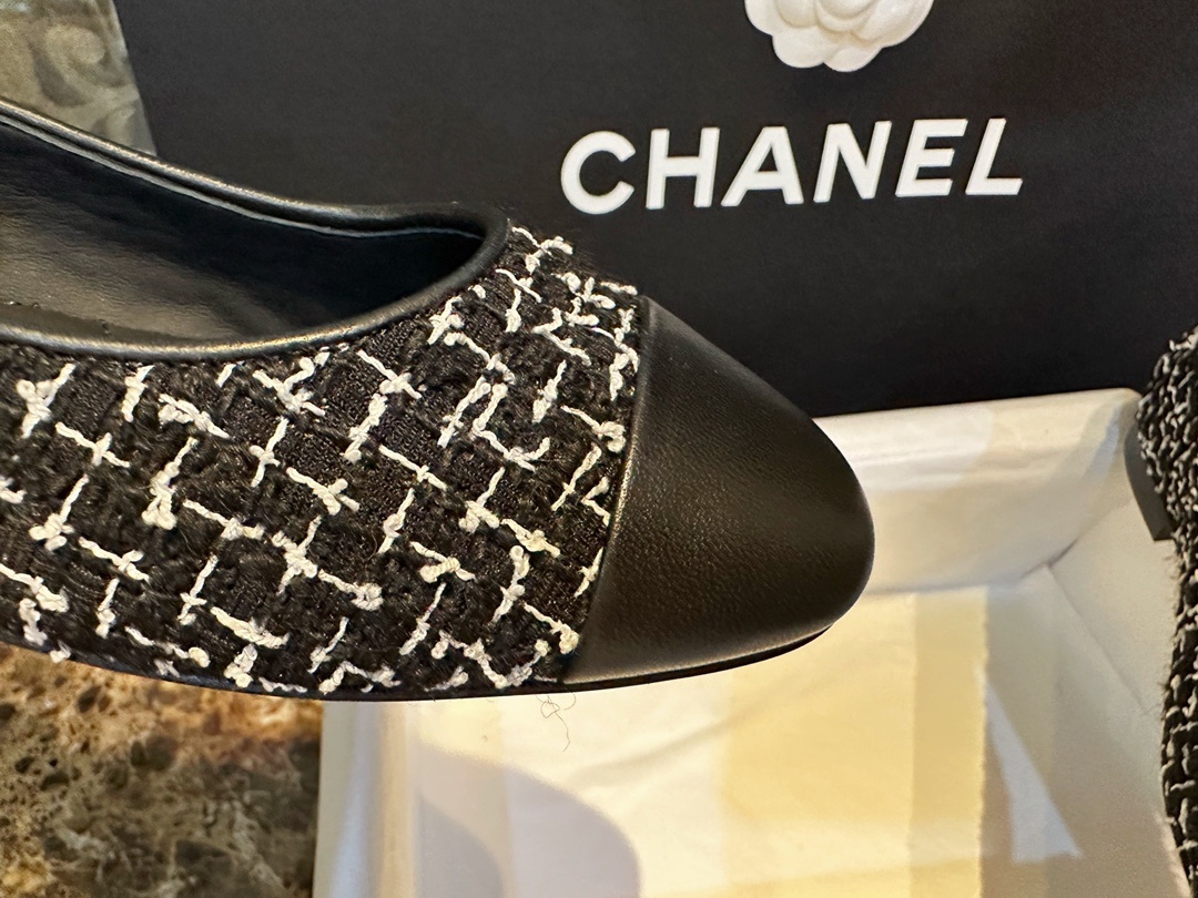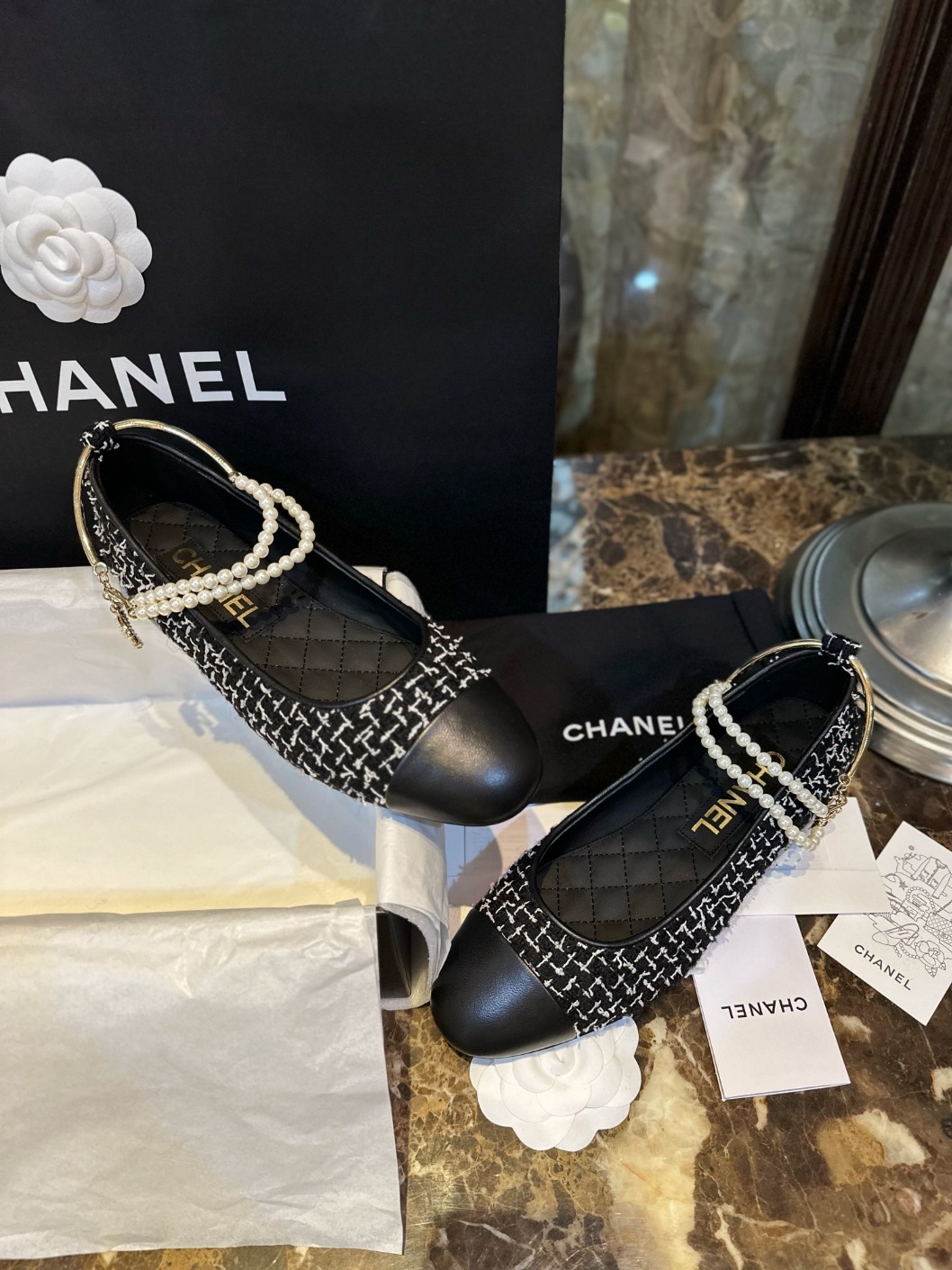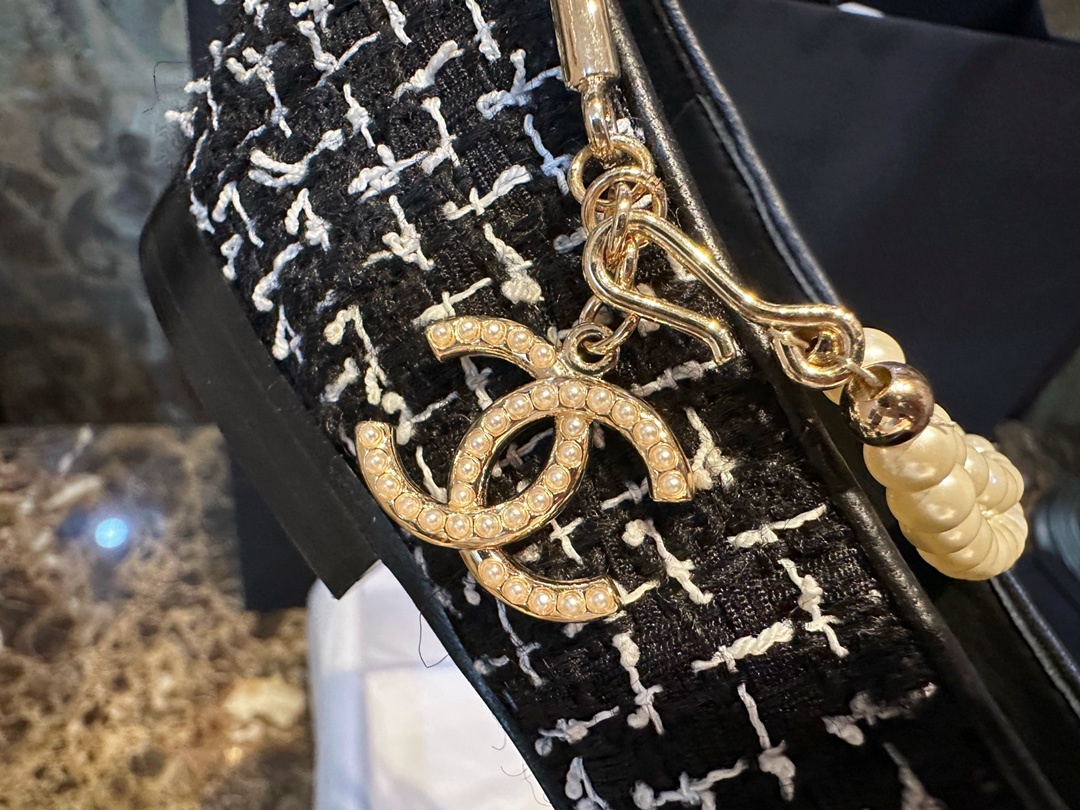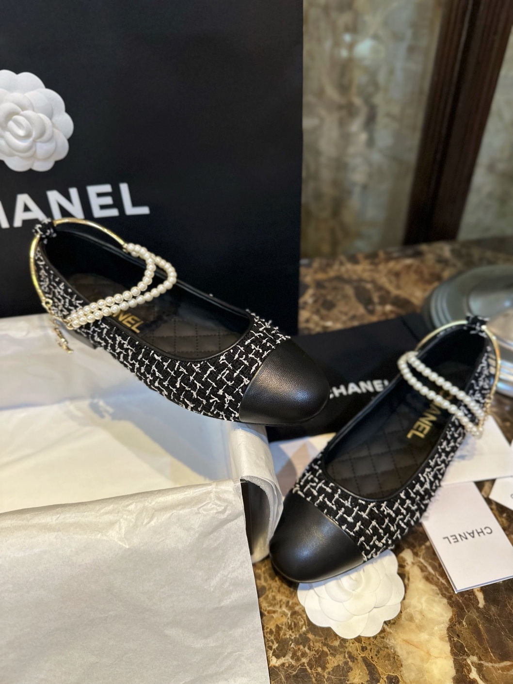 블랙&블랙 체크 진주 메리제인 검은색과 흰색의 체크무늬 천에 검은색 양가죽 앞코를 매치 원앙 진주 체인은 샤넬의 절제된 럭셔리를 잘 설명해주며 튀지 않으면서도 기품이 돋보이며 이태리 리얼 가죽 베이스와 함께 샤넬의 럭셔리한 점을 표현 절제되고 고급스러운 내실 있는 신발을 만듬