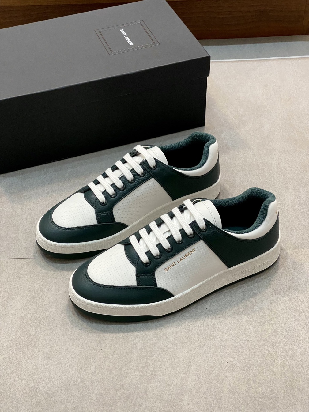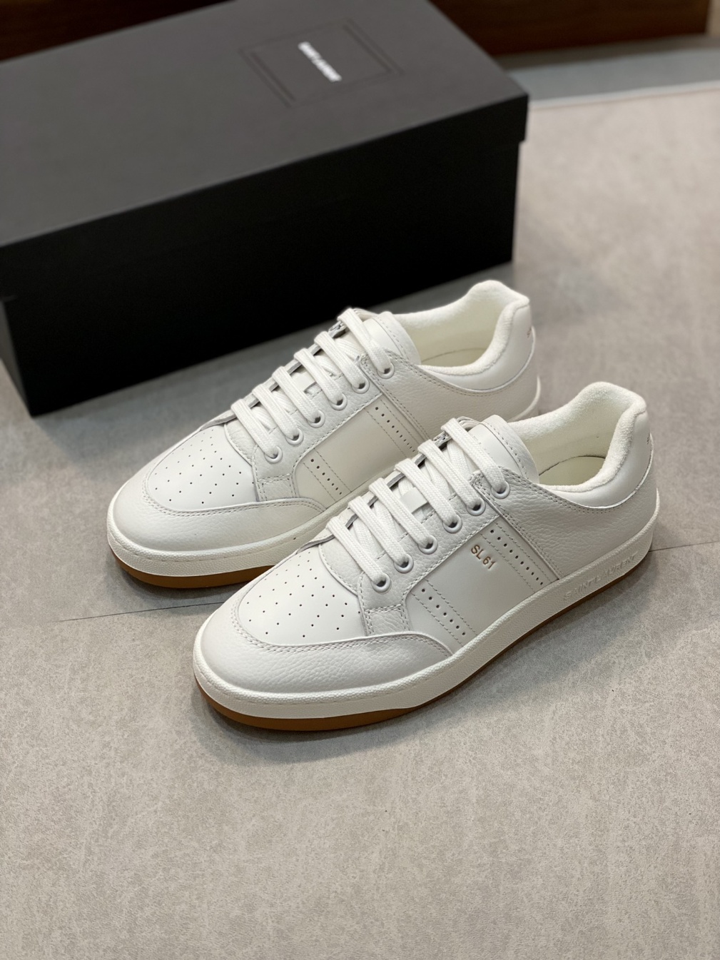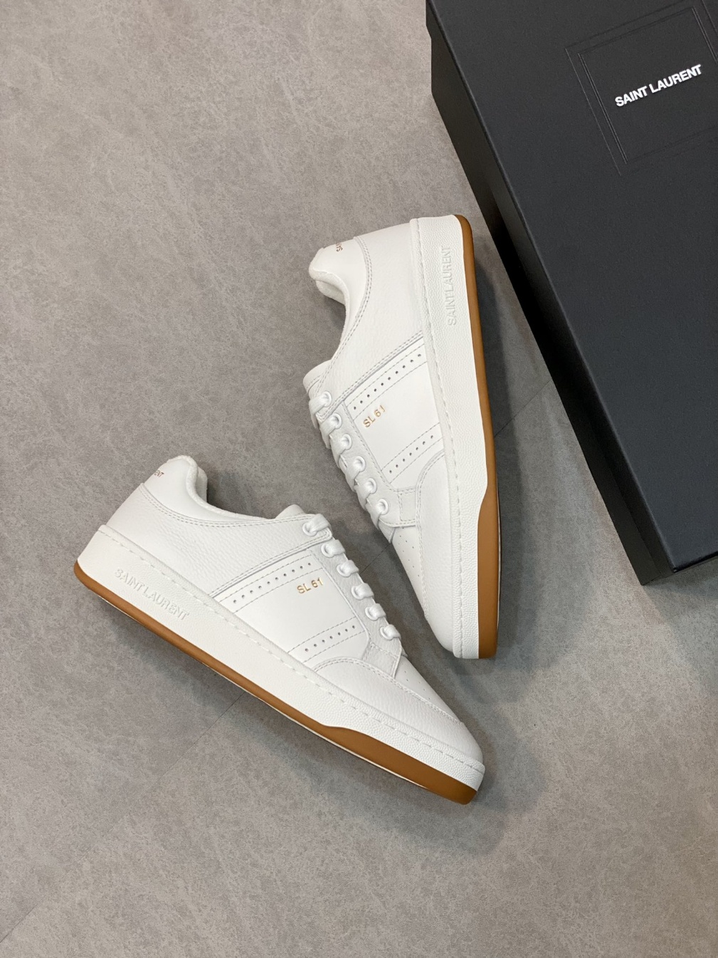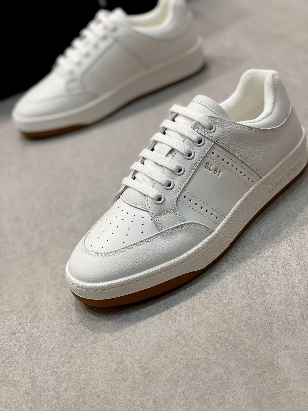 생로랑 로우탑 레이스업 운동화 SL61 공식 홈페이지의 새로운 브랜드 플래그십 스토어 동기화 이태리 원단 소가죽+전면 피팅 포인트 다공성 가죽 지퍼 장식 골드 생로랑 로고, 사이드 장식 SL61 로고 뒷면에 입생로랑 로고 안쪽 Tw 소프트 타올 천을 엠보싱 신발의 유연성을 더욱 높여주고 통기성과 속굽이 없는 매트리스 발감각은 더욱 편안하고 가벼우며 친환경 미끄럼방지 고무 투톤 컬러의 큰 바닥, 큰 바닥 둘레의 차진선