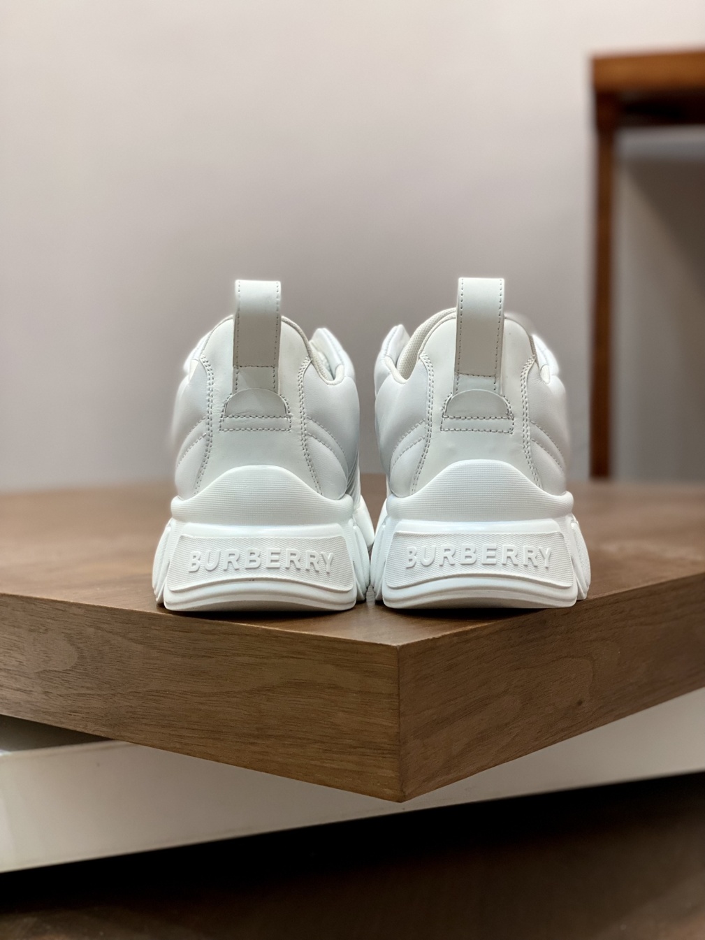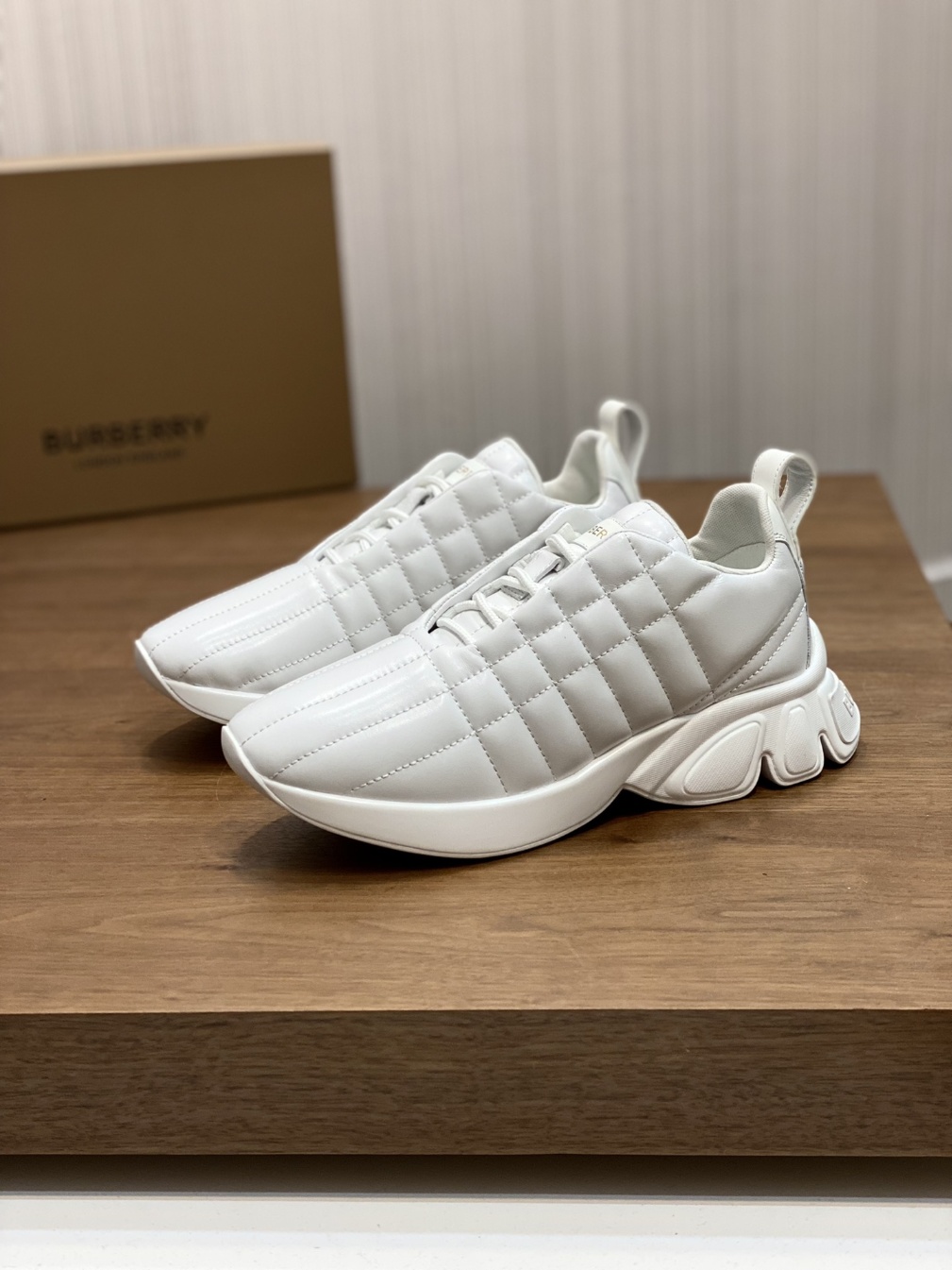 Burberr* Classic 누빔 소가죽 운동화 역동적인 운동화로 수입 소가죽을 선별 퀼팅하여 모던하게 브랜드 체크 요소를 연출 유선형 디자인에 히든 스트랩 구멍과 굽이 포인트인 브랜드 로고 수입 송아지 가죽+통기망 속 소가죽 받침+오리지널 대창