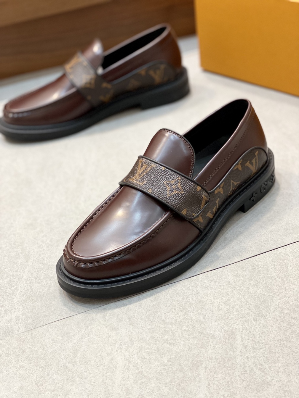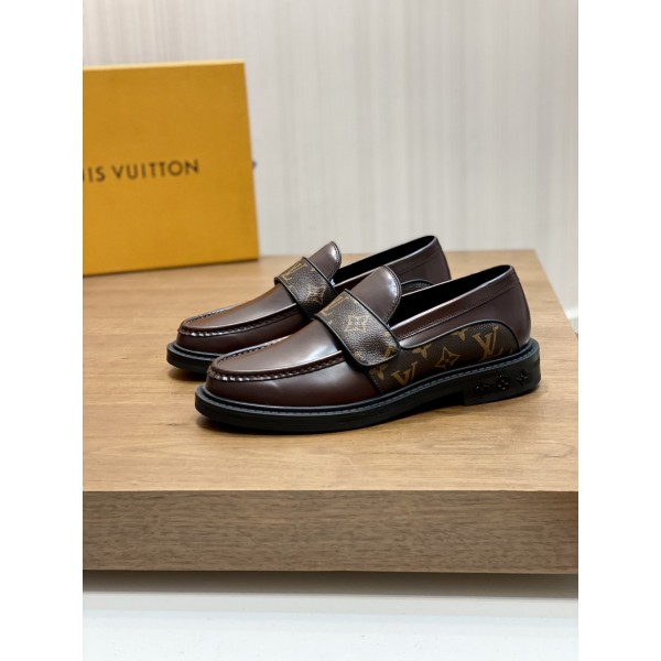 LV FUSION 스트랩 슈즈 오리지널 1:1 맞춤 제작, 최고급 리프레시 클래식한 에나멜 송아지 가죽 구두에 미니 고무 미끄럼 방지 아웃솔 한쪽 면에 모노그램 꽃을 피우고 밑면에는 Vuitton 로고 패드를 덧대어 테크닉 라이닝과 속바닥으로 편안함을 다시 한 번 높여줌