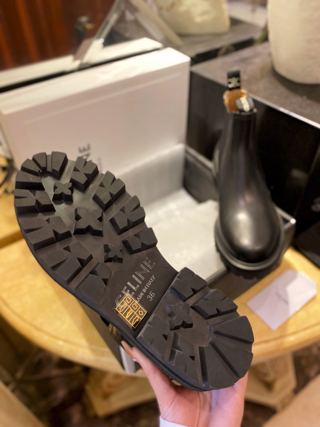 셀린느 첼시 앵클부츠 이탈리아 최고급 가죽공장에서 제공하는 오리지널 왁스 송아지 가죽 내마모성 고무 + 3중 리얼 가죽 베이스로 미끄럼 방지 최고급 발목까지 올라오는 키높이 롱다리 타입 오래가는 스타일, 부츠계의 상록수