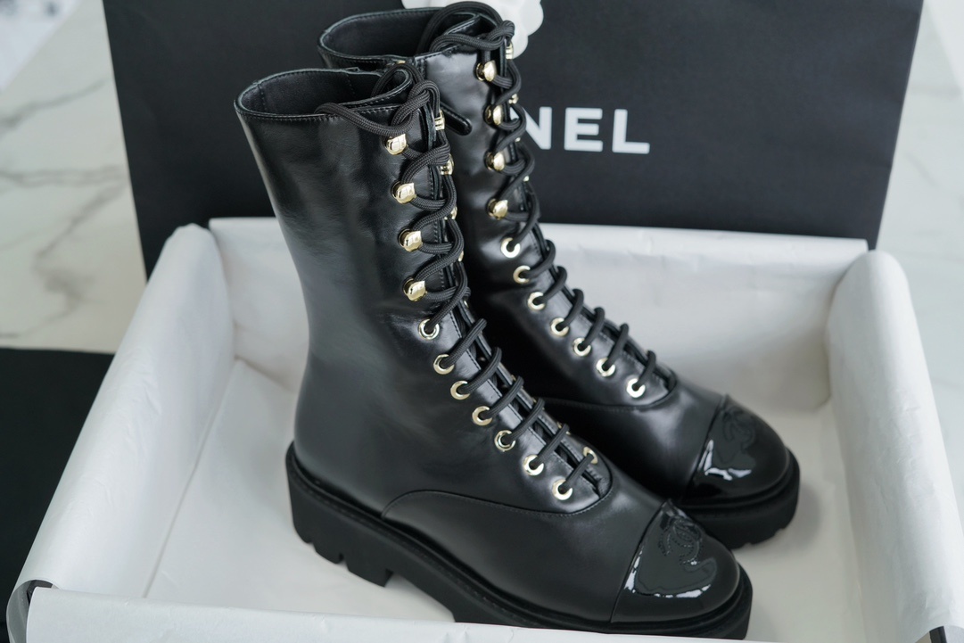 샤넬 블랙 스트랩 워커 송아지 가죽 패치 에나멜 내마모 통굽으로 가볍고 질기며 신기 좋음 스트랩 디자인의 워커로 종아리 포용성이 높음 다리 비율을 늘려주면서 다리를 완벽하게 보정