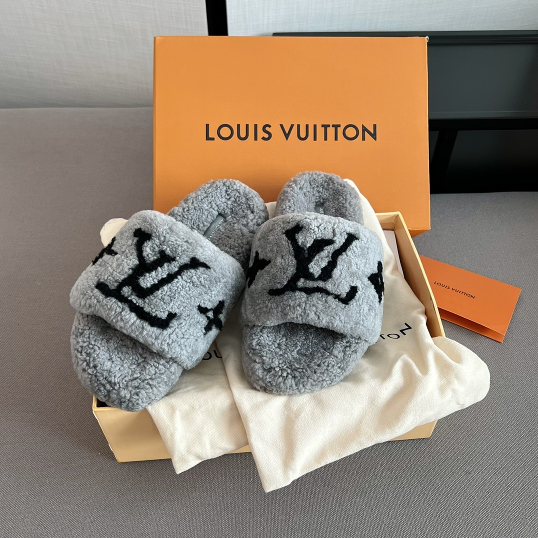LV가 신상 양털 슬리퍼 순가죽과 털을 하나로 모아 만든 매우 따뜻한 느낌으로 구름 위를 밟는 듯한 클래식한 노화 장식 세련되고 고급스러움 오리지널 맞춤 미끄럼 방지 고무 통굽으로 미끄러짐 없이 착용하기 매우 좋으며 매우 편안함