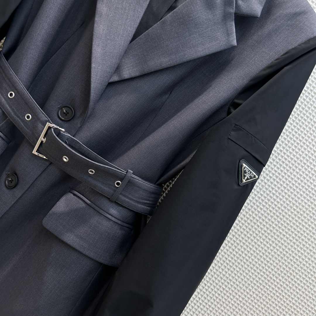 PR 23 초가을 신상 터틀넥 벨트 정장 코트 허리 조임으로 날씬해 보이고 나일론 패치 디자인 시크한 멋스러움 클래식한 역삼각으로 브랜드 매력을 살린 실루엣 수트핏, 어디에나 잘 어울림