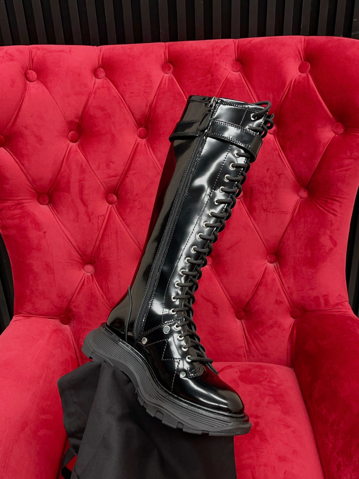 맥퀸 통굽 스트랩 라이더 롱부츠 신발겉면: 순수입 프린지 소가죽, 색깔이 따뜻하고 질감이 촉촉함 일반 국산가죽과는 비교가 안 됨 안감: 수입 물감 소가죽, 유연함 대저: 단독 오리지널 1:1 프라이빗 모델 개발 미끄럼 방지 TPU 사출 성형 바닥+리얼 가죽 스트랩 부착