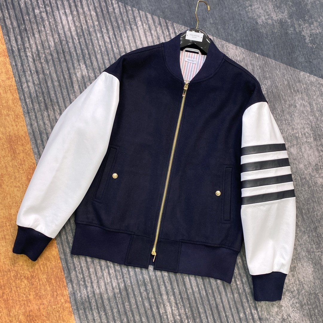 톰브라운 클래식 네 줄 막대 모피 야구복 독점 오리지널 맞춤 수입 펠릿 소가죽 오리지널 정직 울 100% 원단 오리지널 맞춤 철물 부자재 (버튼 모두 24k 리얼 골드 IP 도금 공정) 구매대행급으로 일선 파운드리 선택