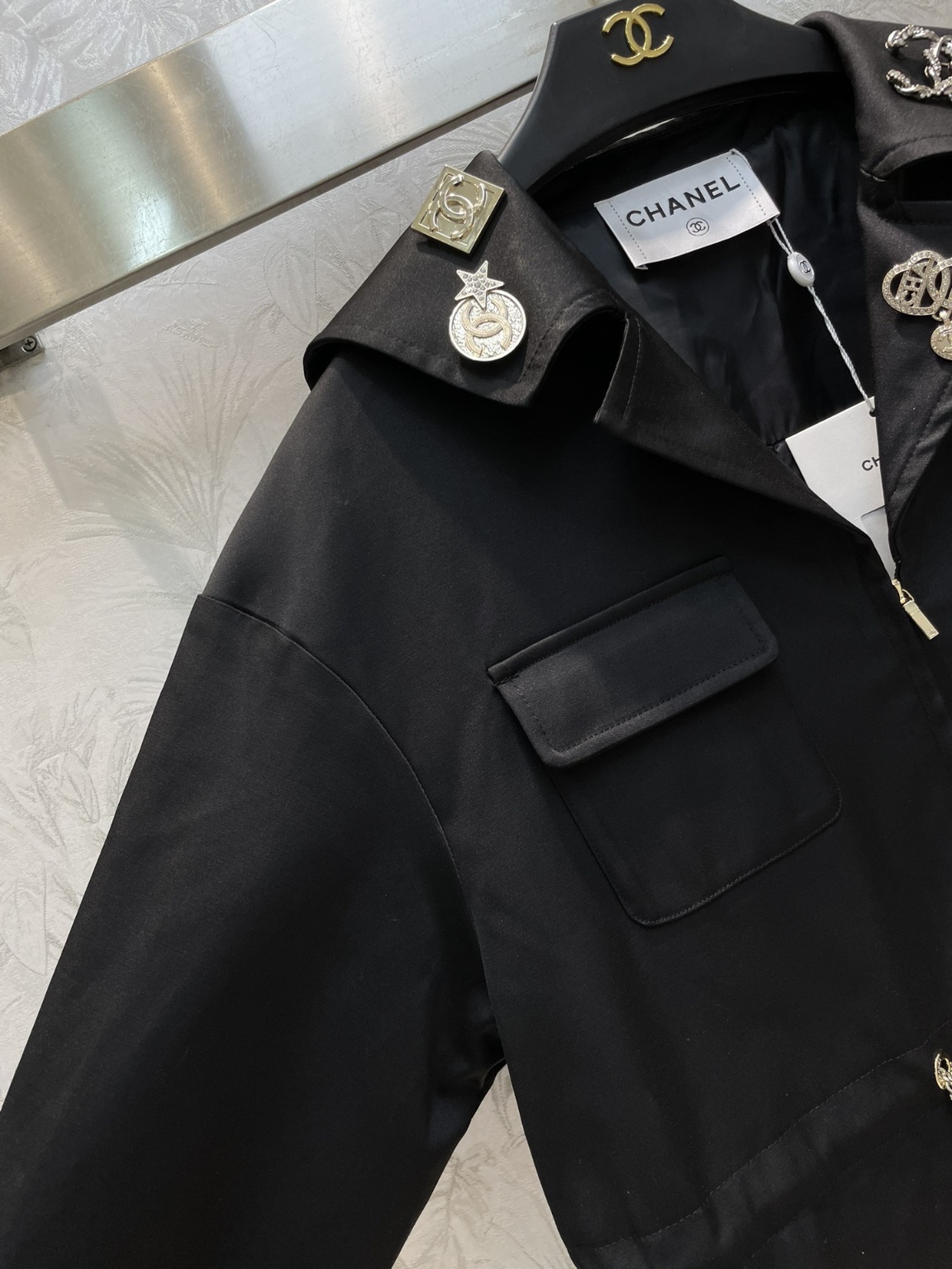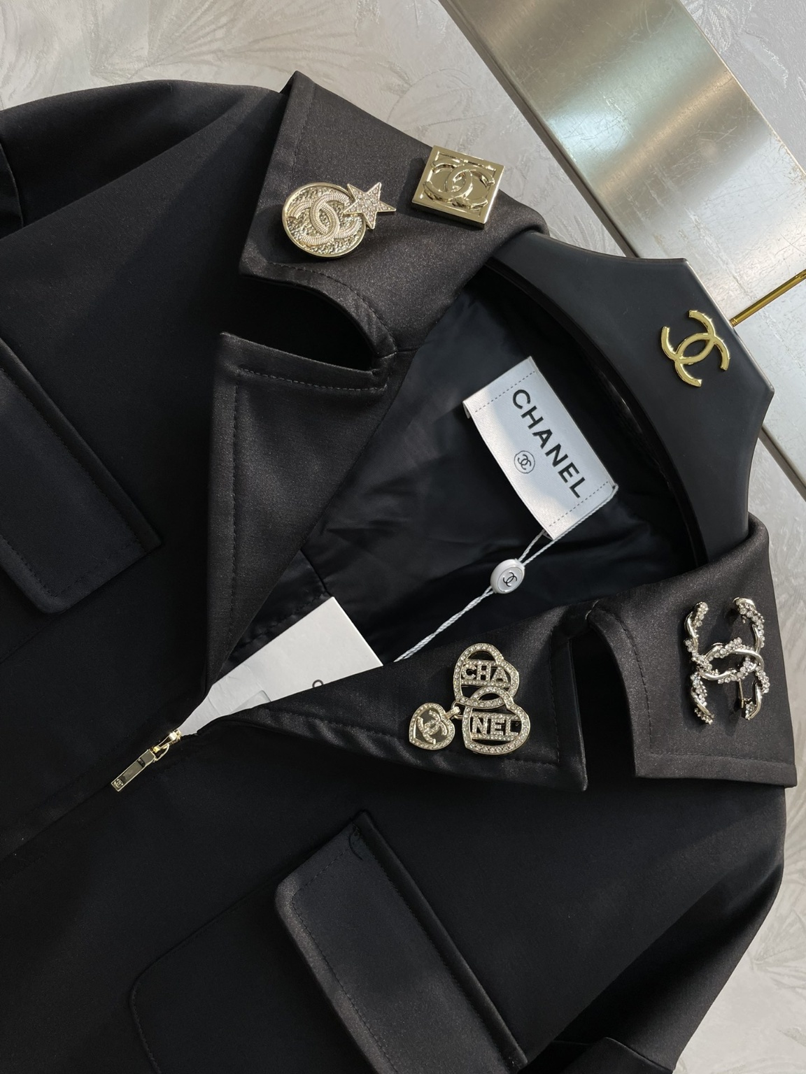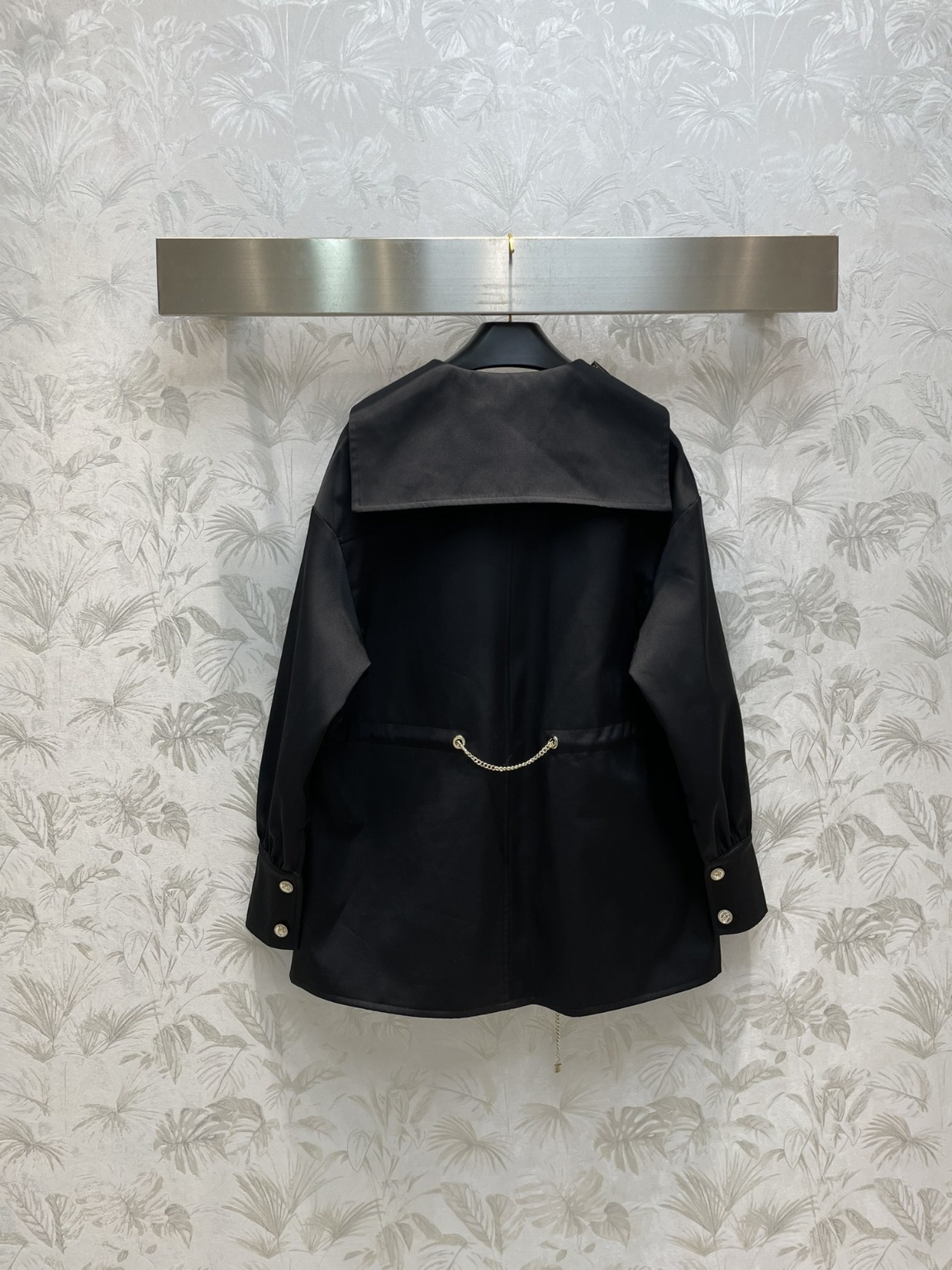 샤넬 23SS 초가을 신상 네크라인 브로치 체인 장식 아우터 네크라인 브로치 장식, 초정교 허리끈으로 허리를 조이고 맞춤 제작이 가능한 철물 부품, 꽉 찬 고급스러운 질감 루즈한 실루엣 핏에 날씬해 보이는 절체형 멀티 포켓 디자인 시크하고 늠름한, 데일리 캐주얼 모두 좋음