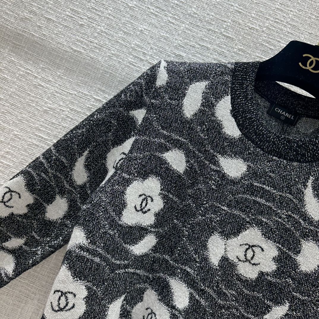 샤넬 23b 신상품, 철사 동백꽃 더블 C원소 엠보 니트 배색 고급스러움이 듬뿍, 빈티지하고 스타일리쉬해요 클래식한 스타일링으로 사람을 가리지 않음 36사이즈: 어깨너비34 가슴둘레86 총장55