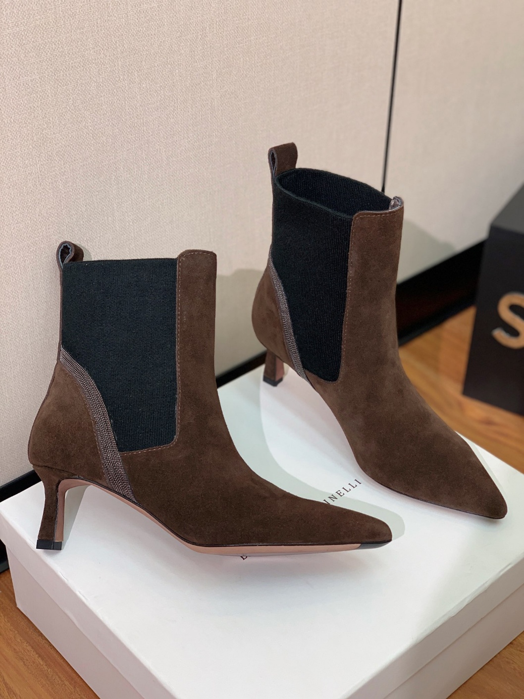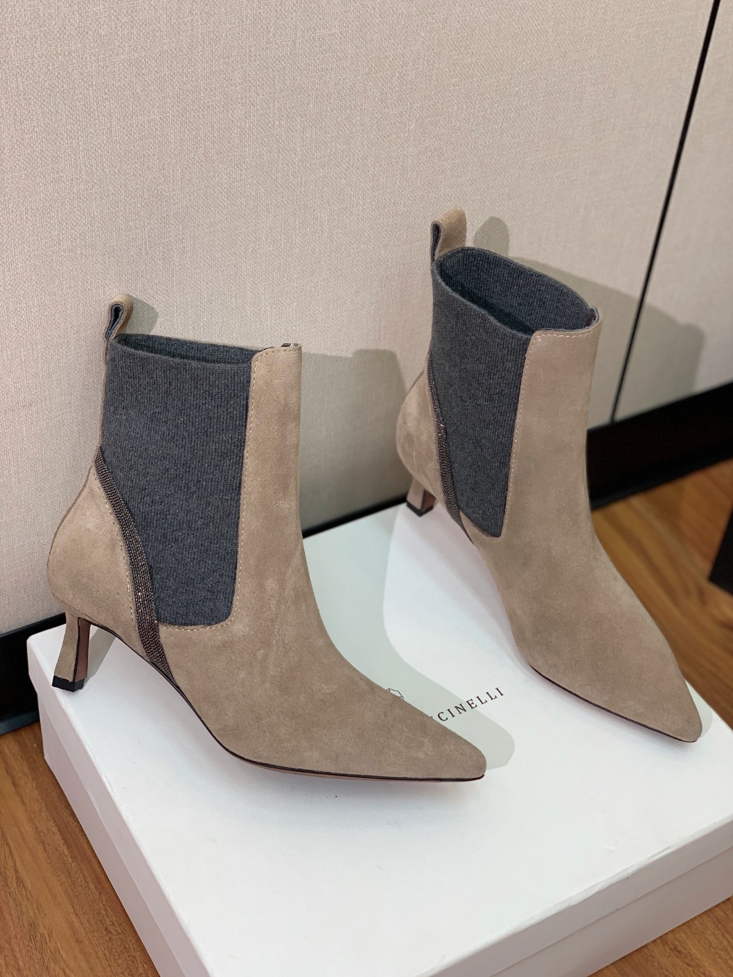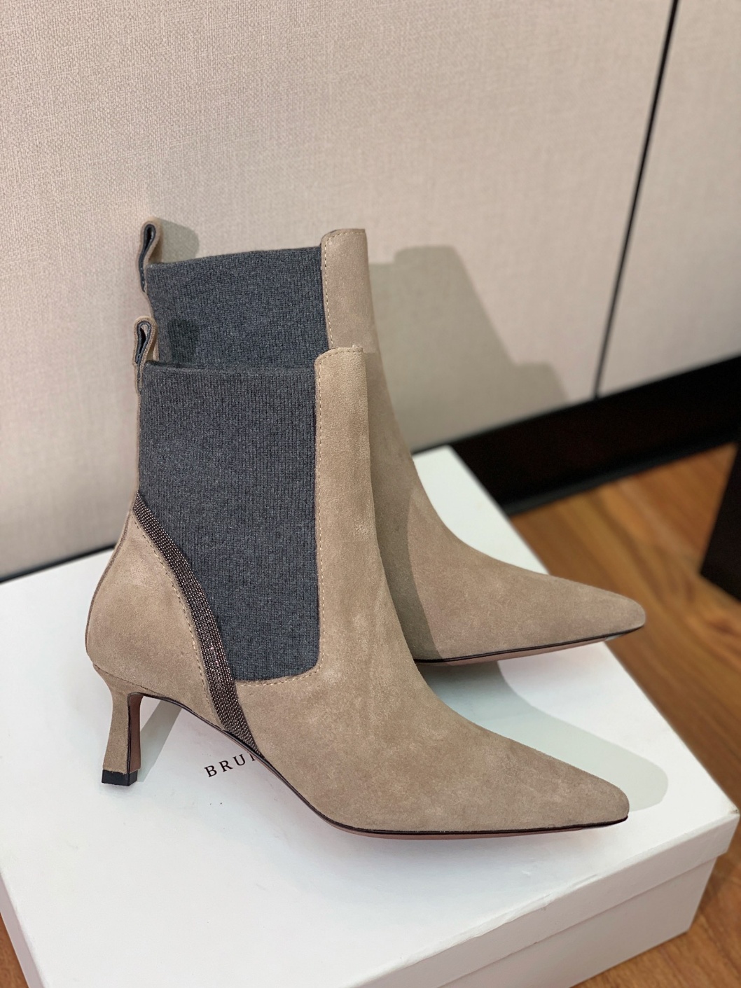브루넬로쿠치넬리 뾰족코 앵클부츠 고전적인 영감은 이 새로운 현대적이고 우아한 스타일을 정의함 신발 겉면에 털실 튜브를 매치 양가죽 발받침, 오리지널 사출 리얼 가죽 대창 굽 5CM