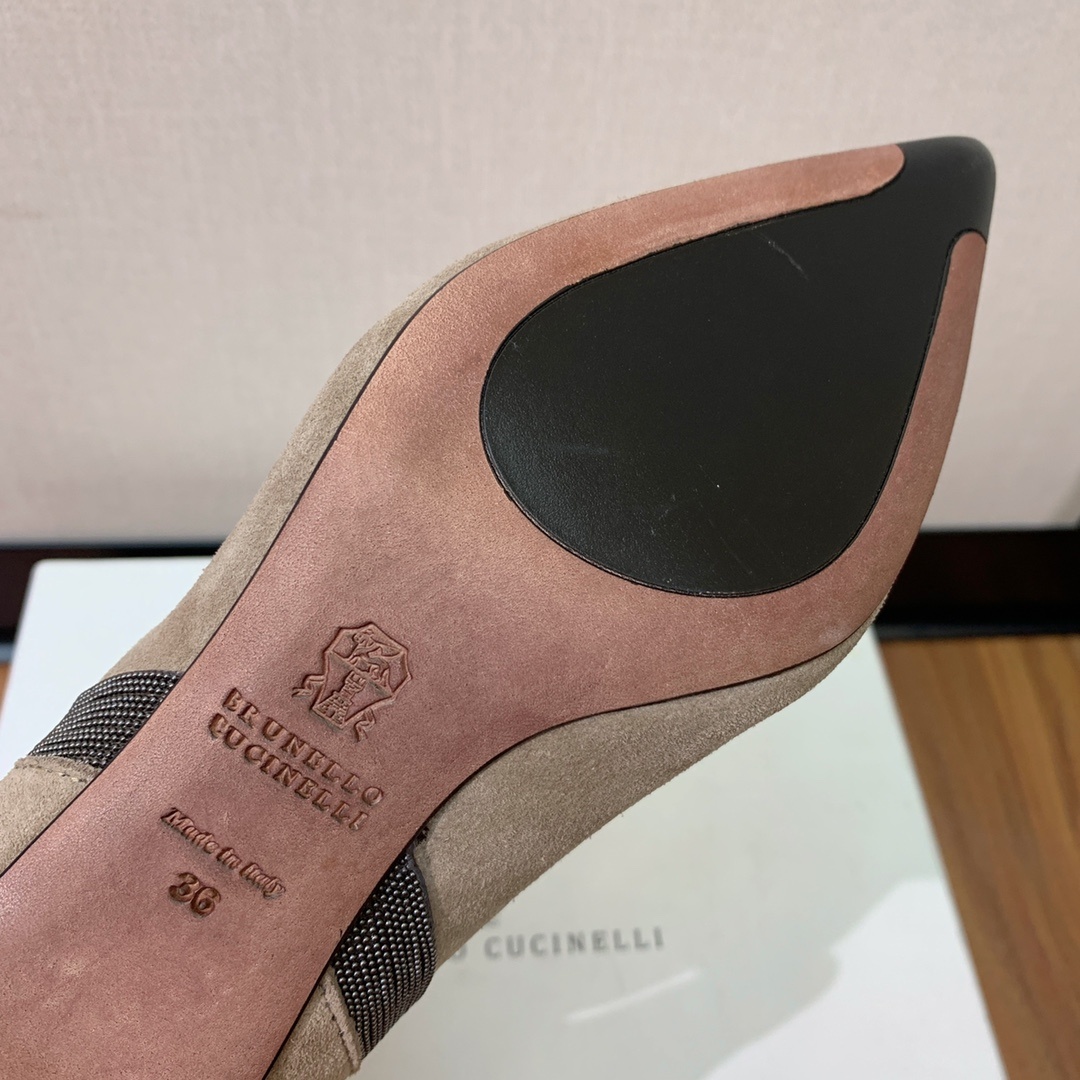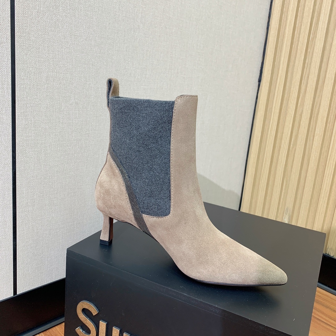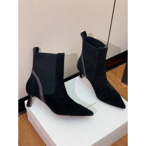 브루넬로쿠치넬리 뾰족코 앵클부츠 고전적인 영감은 이 새로운 현대적이고 우아한 스타일을 정의함 신발 겉면에 털실 튜브를 매치 양가죽 발받침, 오리지널 사출 리얼 가죽 대창 굽 5CM