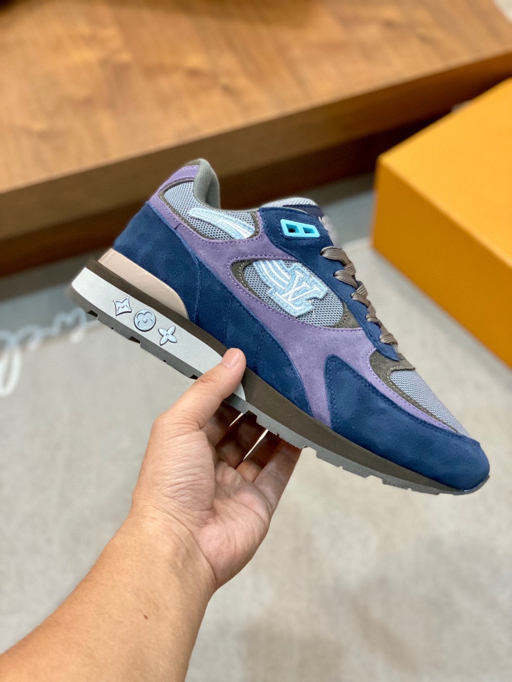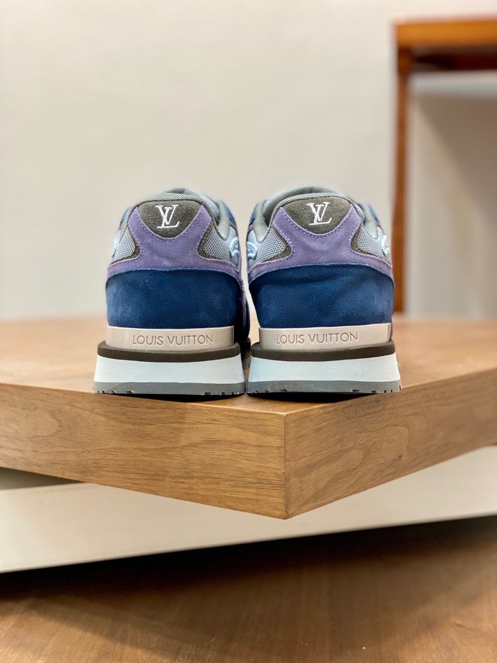 LV 2022 새로운 배색 남성용 트레너 스니커즈 5D 프린팅 로고 패턴 오리지널 메쉬 컬러에 소가죽을 매치 곳곳에 유니크한 디자인을 자랑함 기술 고무의 외부 바닥에는 혁신적인 젤 내부 패드가 장착 아웃솔 모노그램 플로어스 패턴 클래식한 농구화 타입으로, 레이어드하기 쉽고, 통풍이 잘 됨