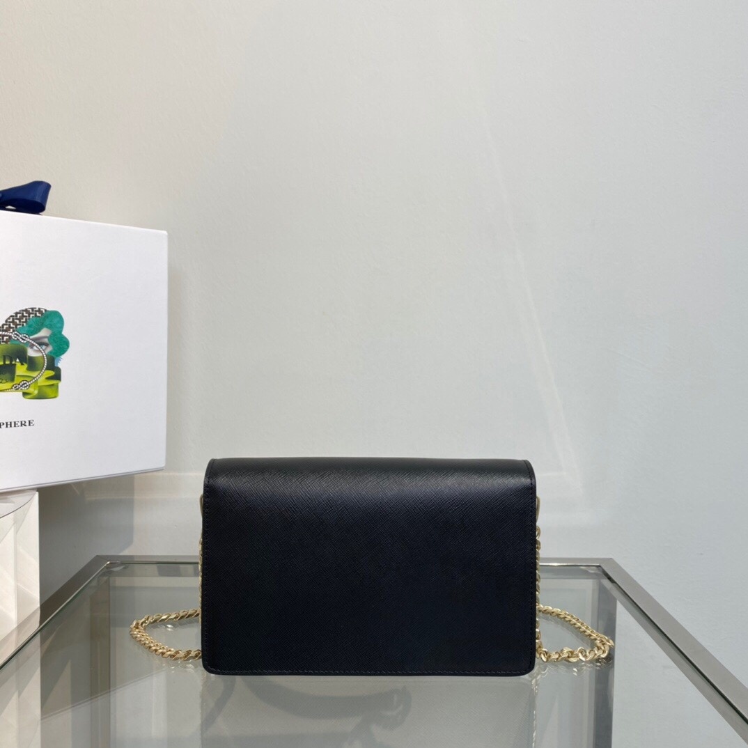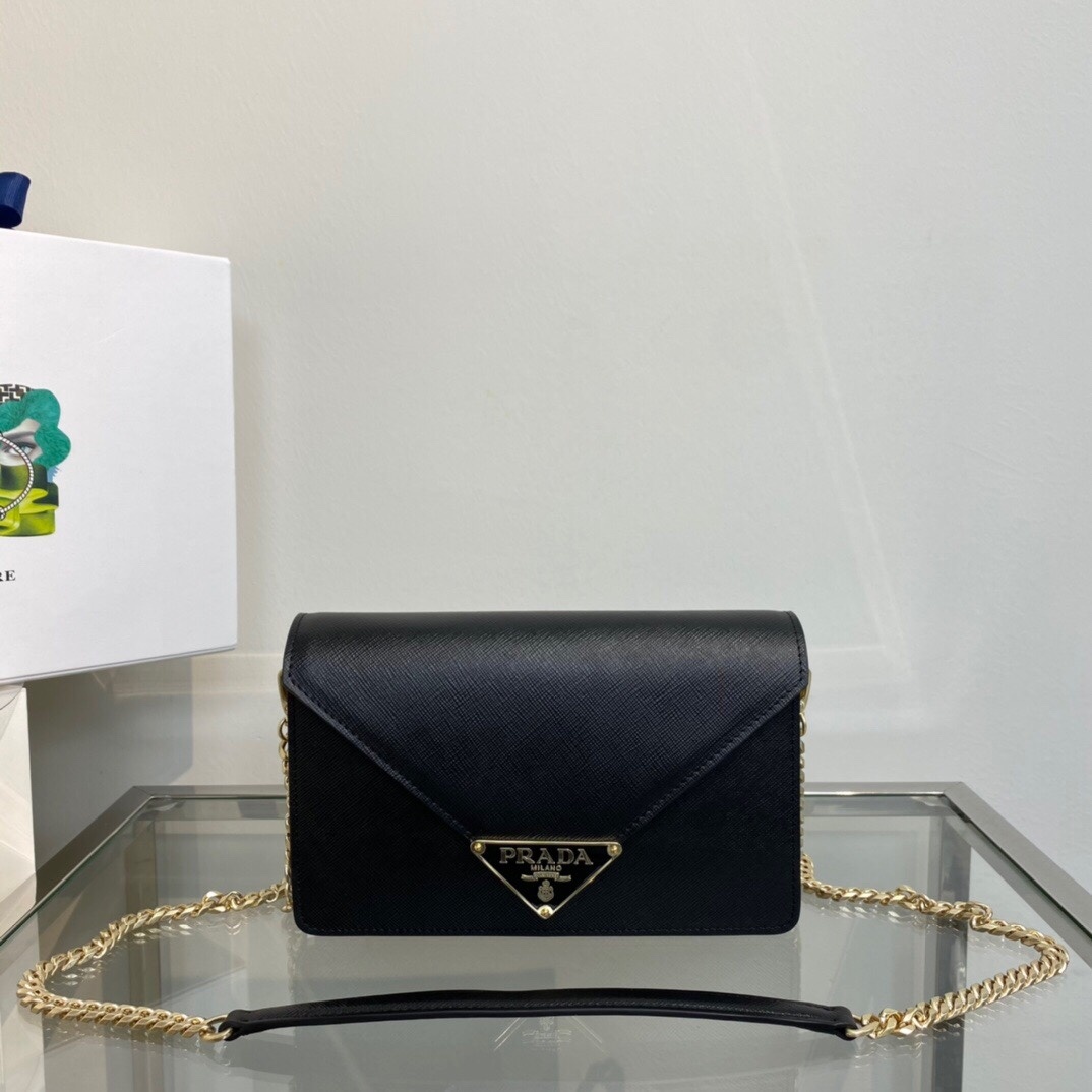 모델번호 1BD318 사피아노 가죽으로 제작된 플랩형 숄더백 작은 양가죽이 내장 독창적인 디자인이 돋보이며 여성스러운 디자인이 한눈에 들어옴 플랩 여밈의 끝부분에는 에나멜 메탈 삼각 로고가 그려져 있으며 탈부착이 가능한 긴 숄더 스트랩 사이즈: 21.5x14x4cm