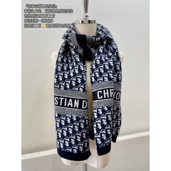 디올 Oblique 프린트 스카프 1967년에 출시된 시그니처 패턴 네이비 컬러의 울과 캐시미어 혼방 니트 원단으로 정교하게 제작 대비되는 "CHRISTIAN DIOR" 로고 스틱 패턴이 돋보임 우아하고 시크하며 다양한 모던 룩에 매치 가능 소재 : 울 70%, 캐시미어 30% size:200x30cm