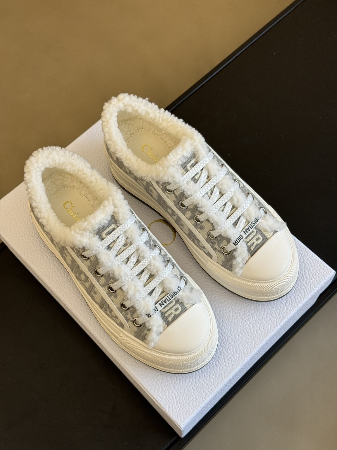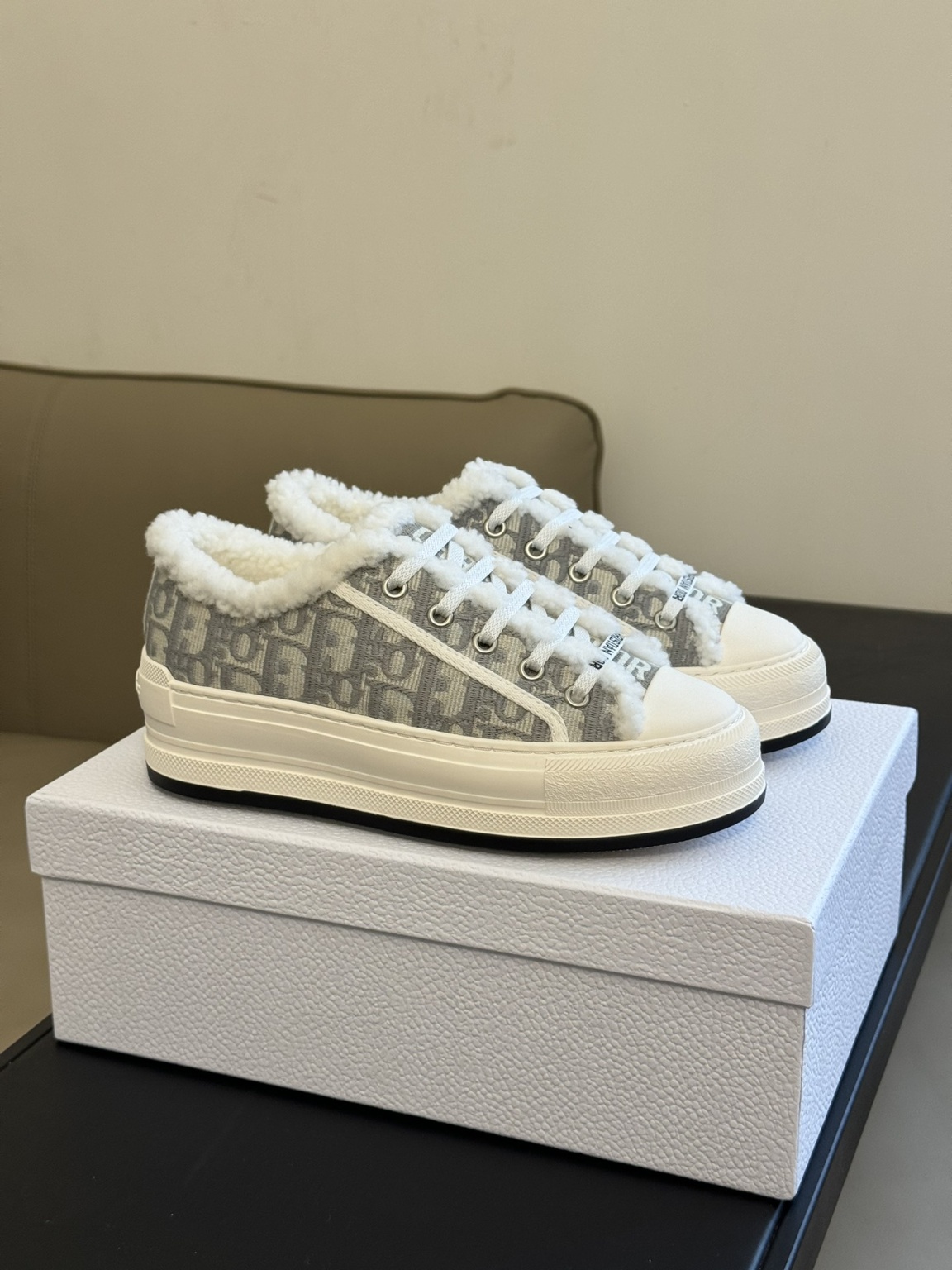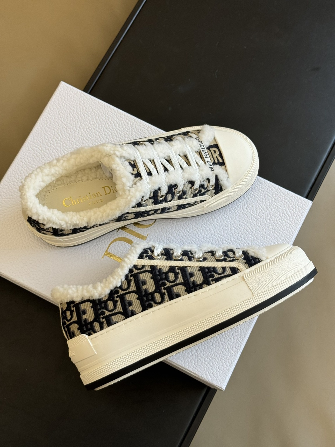 최고 품질 디올 ss24 new arrival 2024 이른 봄 신상 클래식 통굽 자수 스니커즈 내피 퍼 일체형 램 스웨이드 보온성을 겸비하여 나이스 키높이 효과도 굿