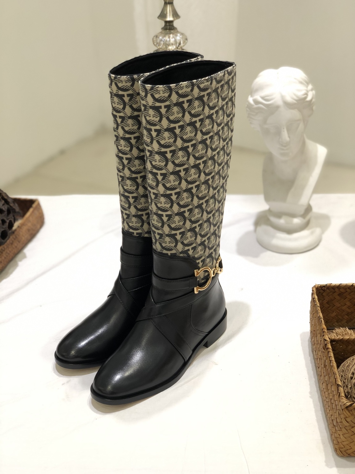 페라가모 가을 겨울 신상 출시 간치니 발굽 롱부츠 오리지널 정품 분해 복각 아름다운 코 디자인의 앞머리/뒤꿈치/전기수 로고와 메탈로고 버클 겉감: 수입 송아지 가죽 내피: 수입 친환경 혼종 양가죽 대창: 고밀도 리얼 소가죽 대창 굽높이:2.5CM