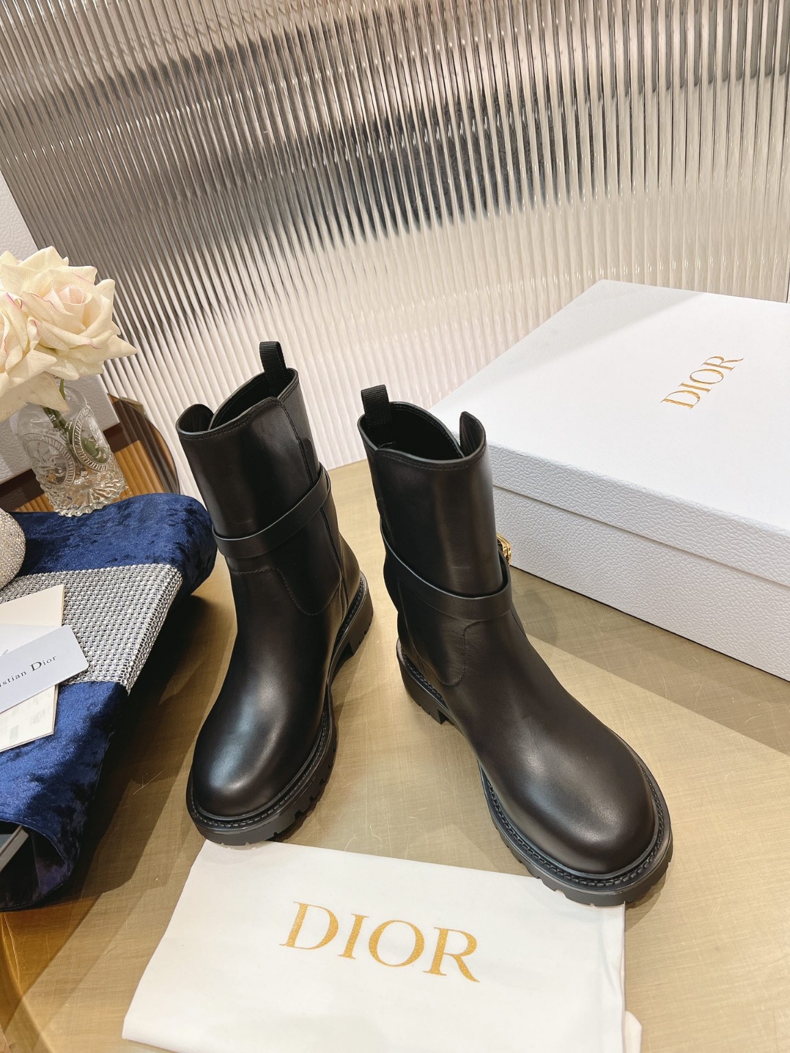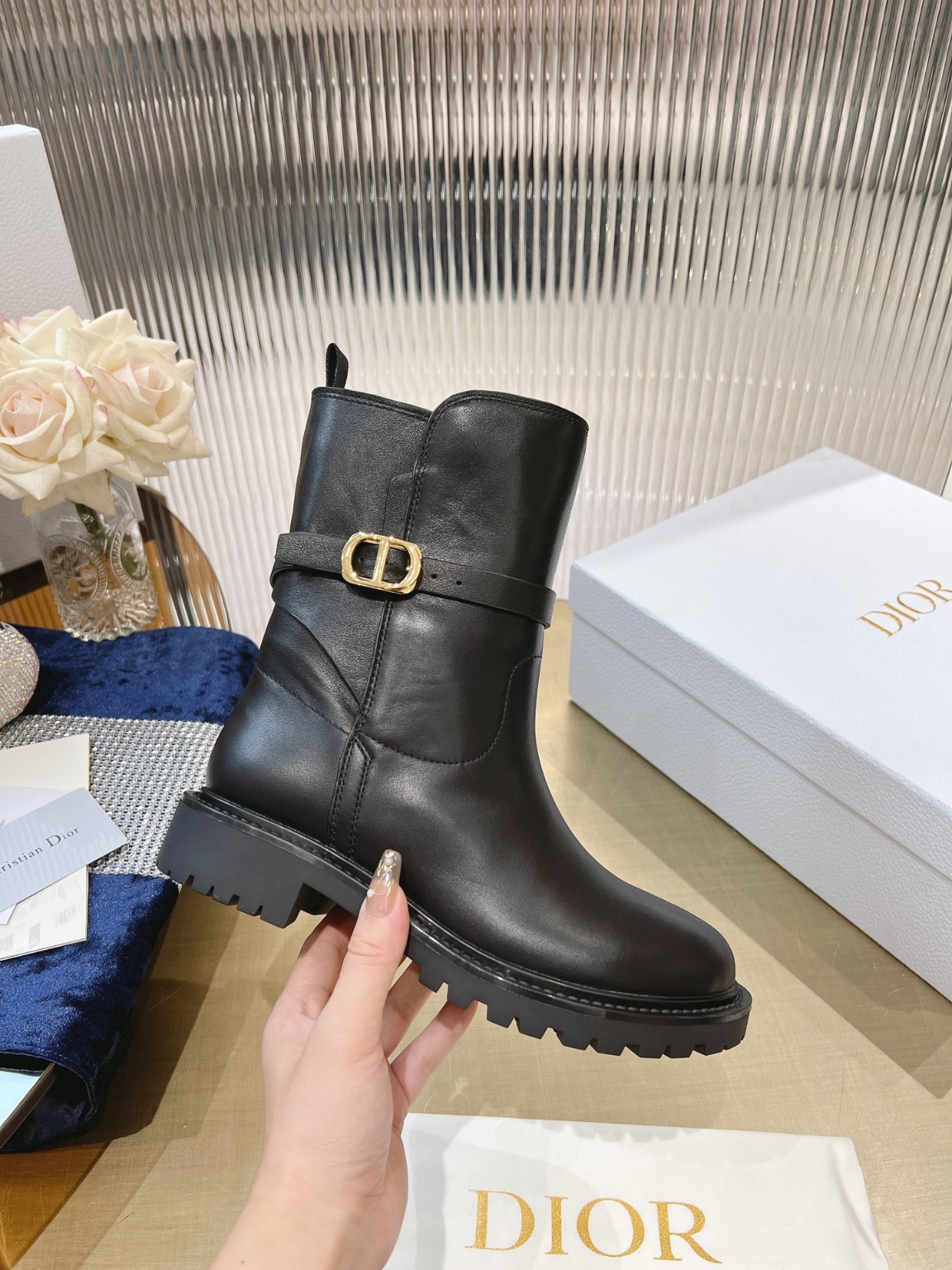 디올 23ss 가을겨울 뉴 앵클부츠 탑 버전 조절 가능한 스트랩에 'CD' 로고가 클래식한 디자인을 자랑함 부드러운 소가죽으로 제작되어 캐주얼하면서도 우아한 스타일을 연출 가죽 밑창에 크리스찬 디올의 럭키스타 겉감 수입 송아지 가죽 내피 물감 소가죽 원판 오픈형 대저 신발 앞뒷면 필름은 모두 개인 연마기