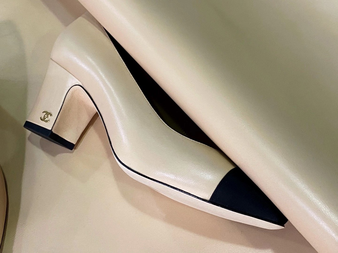 샤넬 통굽 슈즈 오리지널 가죽인지 아닌지는 손에 쥐면 확연히 구별됨 가죽의 무늬, 특성 모두 매우 다르게 맞춤 제작