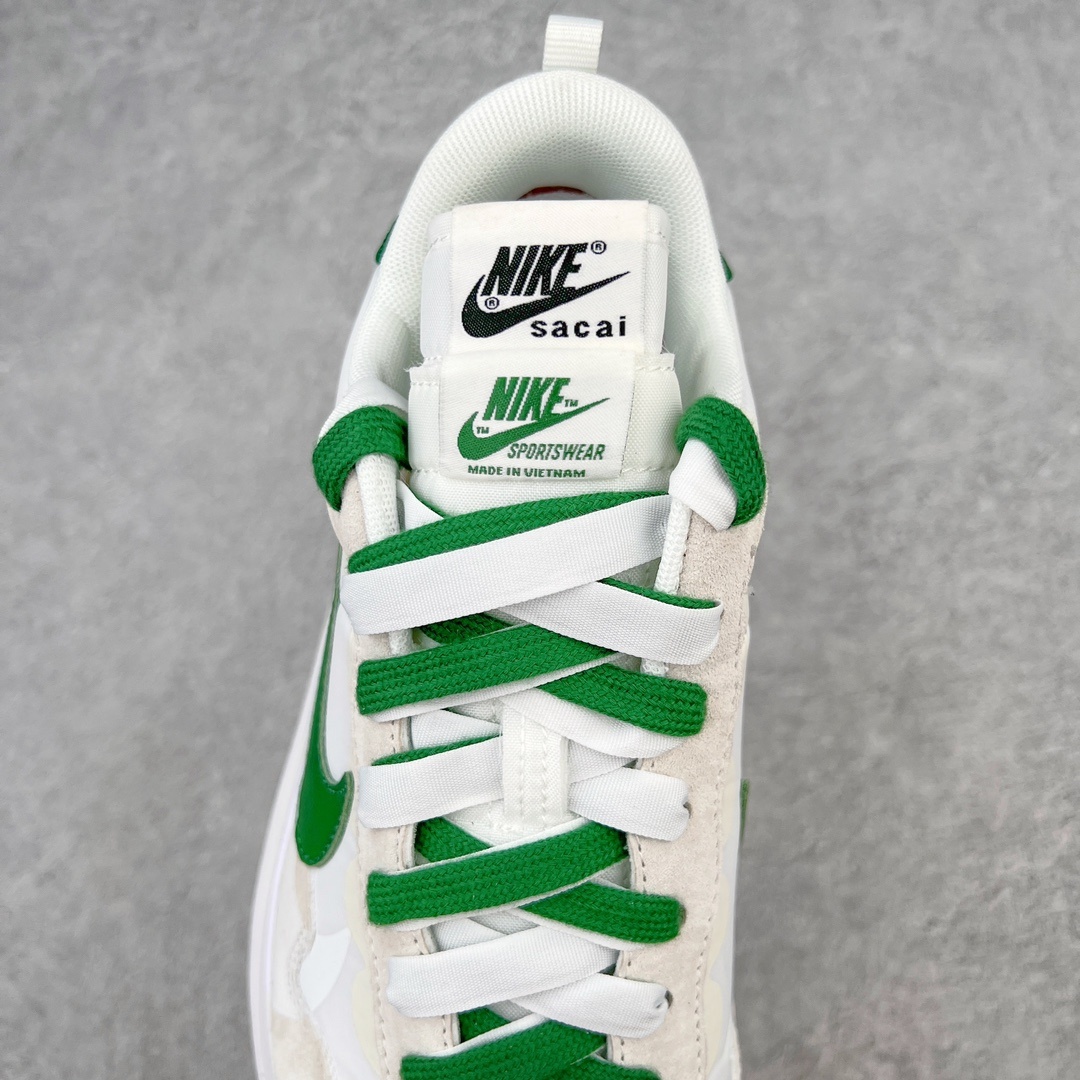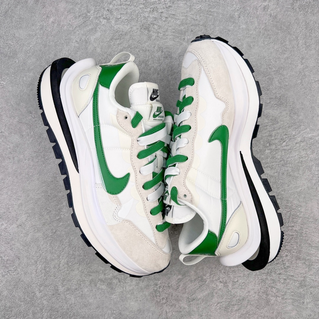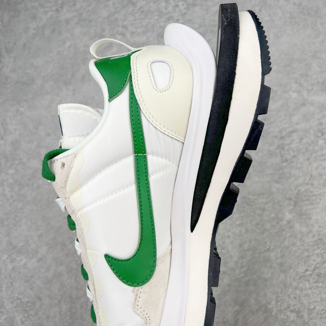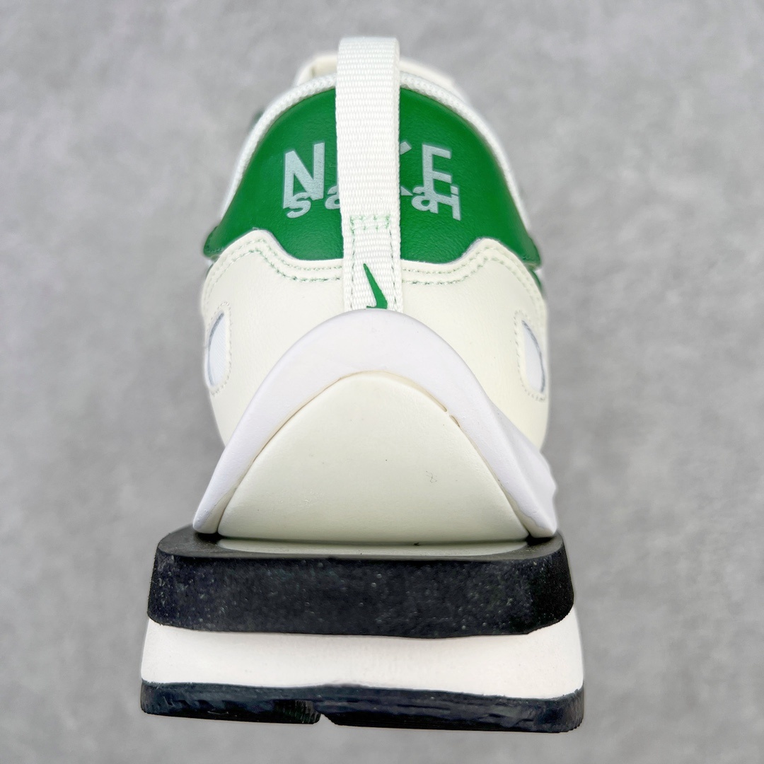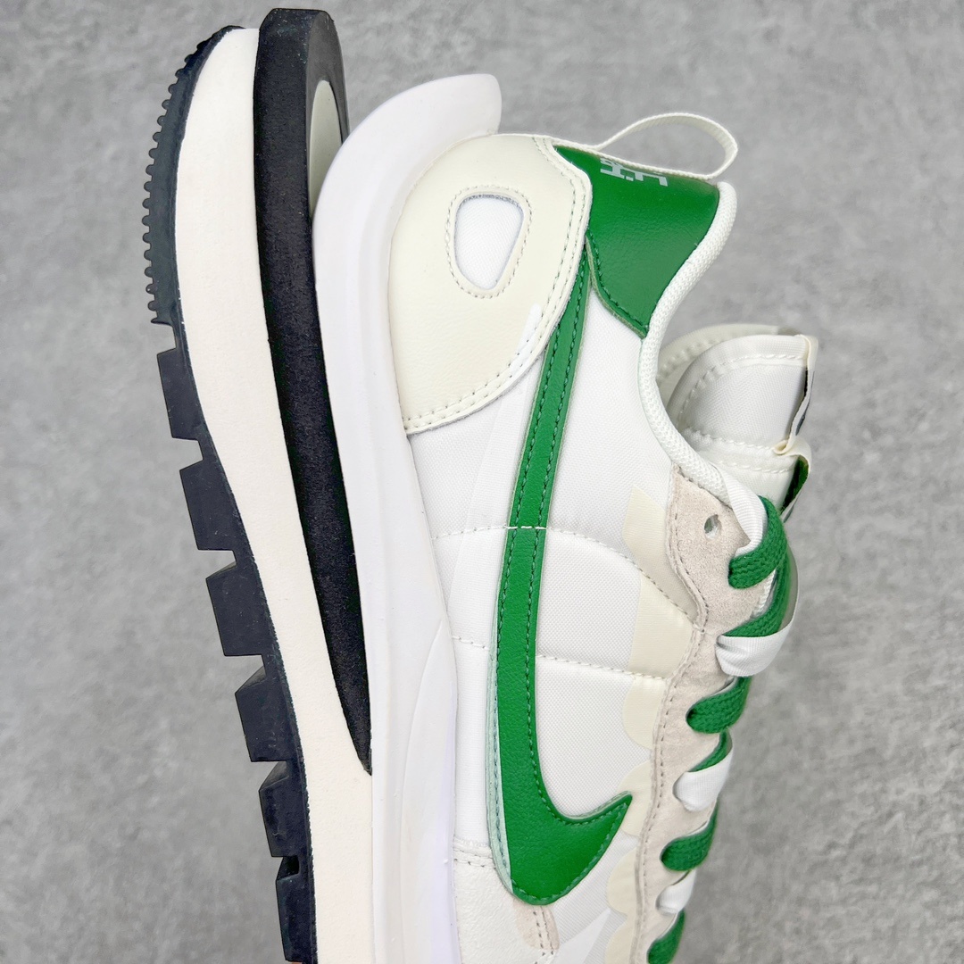Sacai x NK Vapor Waffle 와플 3세대 3.0 워킹 헤비웨이트 콤비네이션 화이트 그린 신발은 페가수스와 VaporFly의 디자인 요소가 함께 구성되어 있으며 무스탕과 통기성 메쉬가 함께 어우러져 익숙한 텍스쳐링 기법 겹침 스우쉬, 이중 슬립, 끈, 뒤꿈치 사카이 폰트까지 모두 보유 가장 큰 포인트는 이번 밑창변경에 더욱 강화된 층수