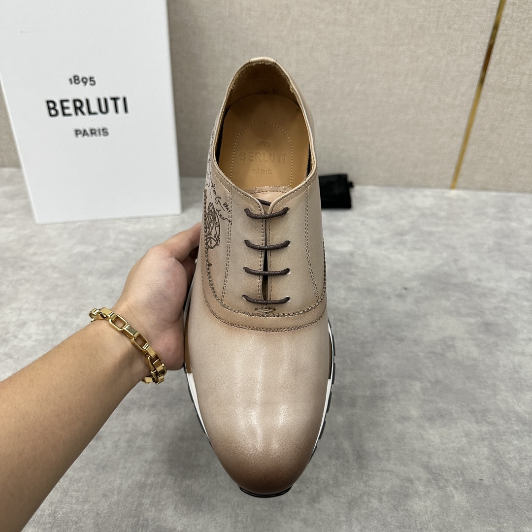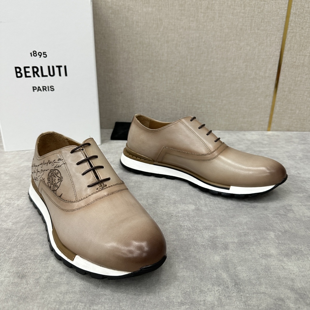 벨루티 Fast Track 가죽 운동화 공식판매가 RMB 11,200 최신 남성 캐주얼 러닝화 수입가죽 배아 핸드메이드 개색 스크리토 패턴 송아지 가죽 라이닝과 블랙 안창 구미 스타일 왁스실 핸드메이드 봉제 안감 수입 블랙 송아지 가죽 이중 송아지 가죽 깔창 제작 깔창 고탄력 오솔레 전체 압착 금형의 섬세함 요구 사항 매우 높은 거울 처리로 마무리되어 모래 바닥이 잘 분할됨 원박스 포장으로 판매
