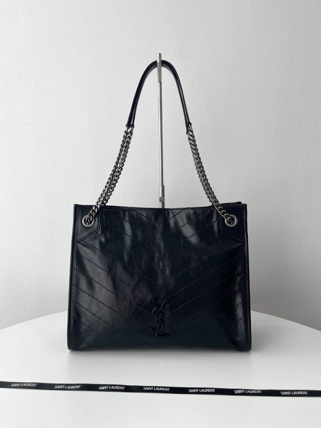 생로랑 NIKI SHOPPING BAG 주름잡는 왁스 소가죽과 로고로 가죽을 감싸는 디자인 가방 중간중간 마그네틱 스냅버튼이 있어 안전성이 보장 지퍼칸과 오픈소켓이 있어 휴대폰과 잔돈카드를 쉽게 꺼낼 수 있고 자중량이 매우 가볍고 용량이 넉넉하며 서류가방, 여행가방, 쇼핑백, 엄마가방 실용성이 폭발적 모델 번호:577999 사이즈:33x27x11.5cm