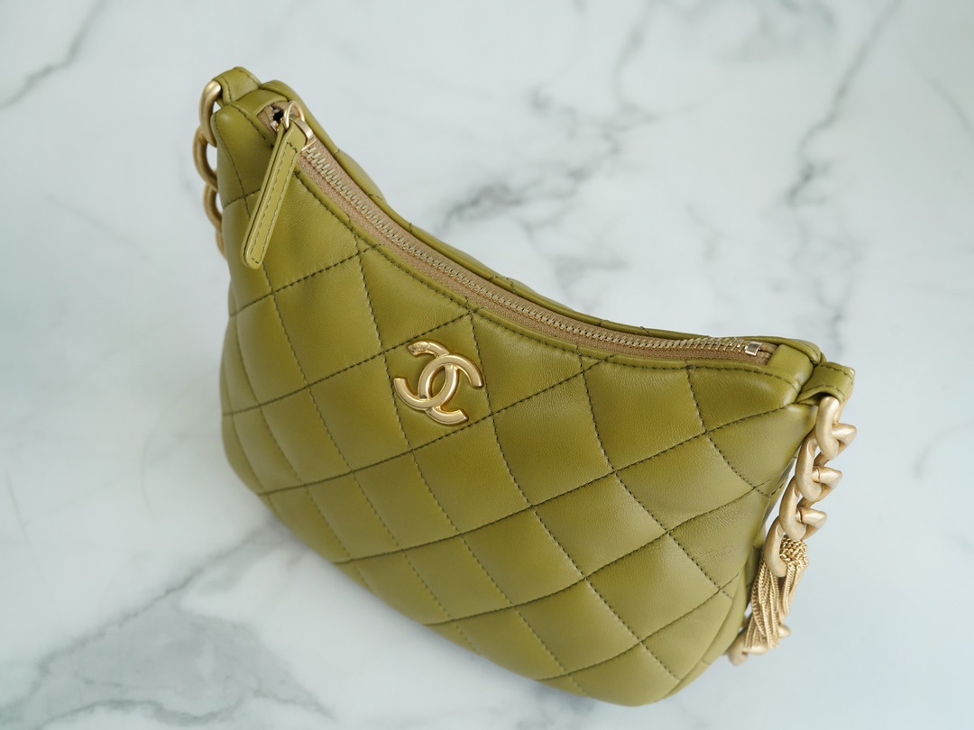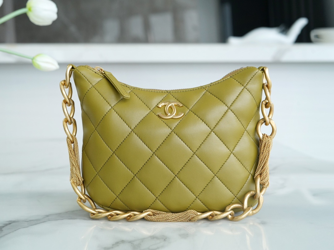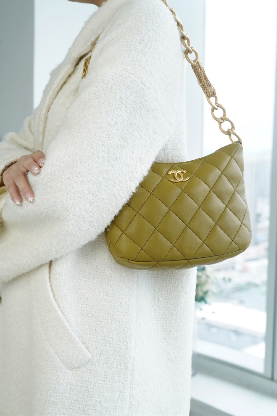 샤넬 호보 수제방 겨자그린 모델번호 AS4220 대박 만인 팬, 헤비듀티 리턴즈 가방은 전체적으로 가볍고 무겁지 않으며 독특하고 빈티지한 철물 체인의 아름다움이 극에 달하며 공예감이 매우 강하며, 클래식한 흑금 배색+마름모 태슬 제어는 타격이 가능하며, 흡인력은 100점 드림 사이즈:19*24*5cm