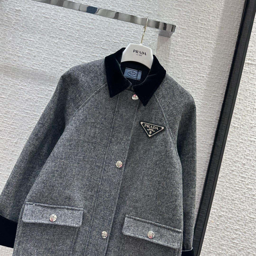 프라다 23 신상품 확정 벨벳 카라 플라워 그레이 코트 블랙 벨벳 패치 H핏 디자인 깔끔하고 멋스러우며 카고풍 빅포켓으로 부담없이 코디 맞춤 하드웨어 부품 제작 품질 세부 사항 보기 S사이즈 : 드롭숄더, 가슴둘레 102, 총장 71