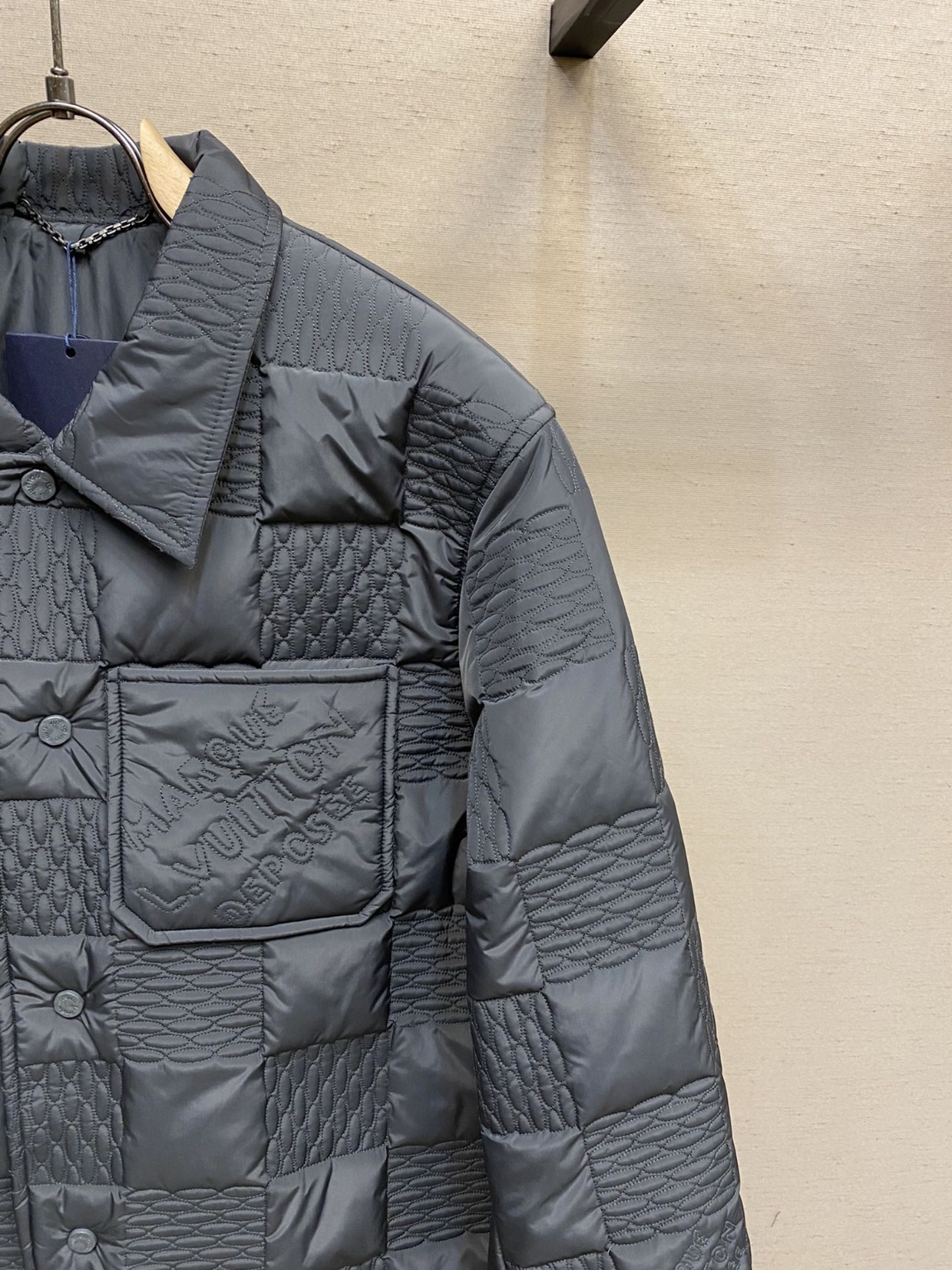 루이비통 2024FW 자수 모노그램 체크 스냅 패딩 점퍼 2024 서바이벌 파리 봄여름 남성복 쇼 파렐 윌리엄스 테마 의상을 입고 첫 쇼를 마치고 출시 추운 계절을 완성하는 아담한 레이어드 선택 세탁방식 : 드라이클리닝만 가능함