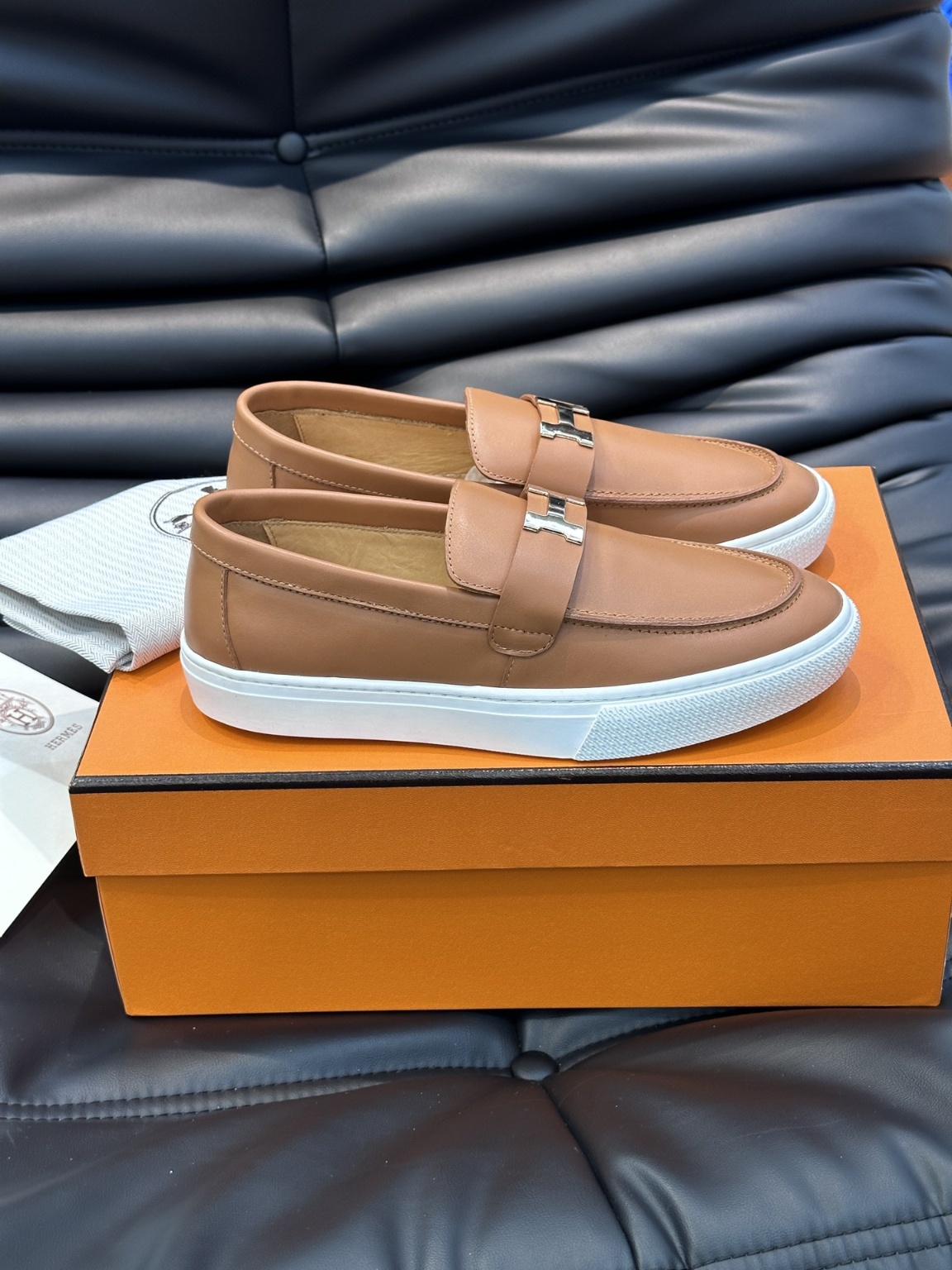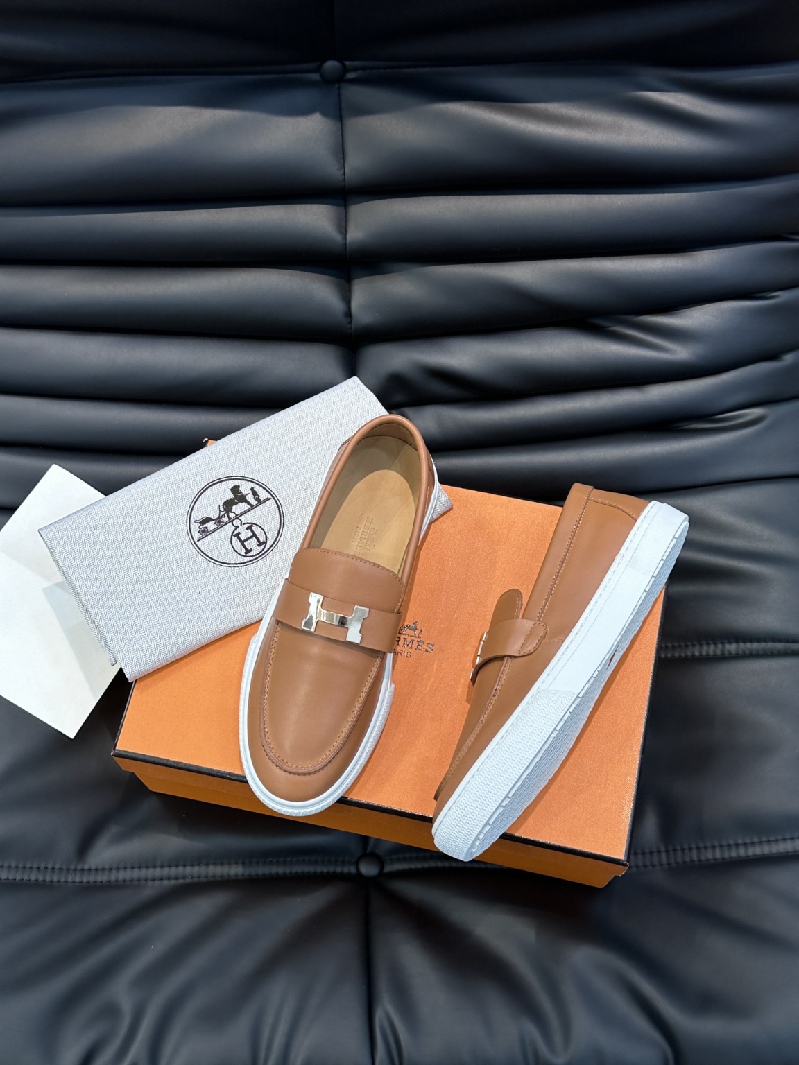 에르메스 프리미엄 럭셔리, 남성 캐주얼 로퍼 송아지 가죽 겉면, 부티크급으로 모던하고 도시적인 스타일을 완성 수입 송아지 가죽 안감으로 부드럽고 편안하며 TPU 통굽이 가볍고 편안하며 부티크급