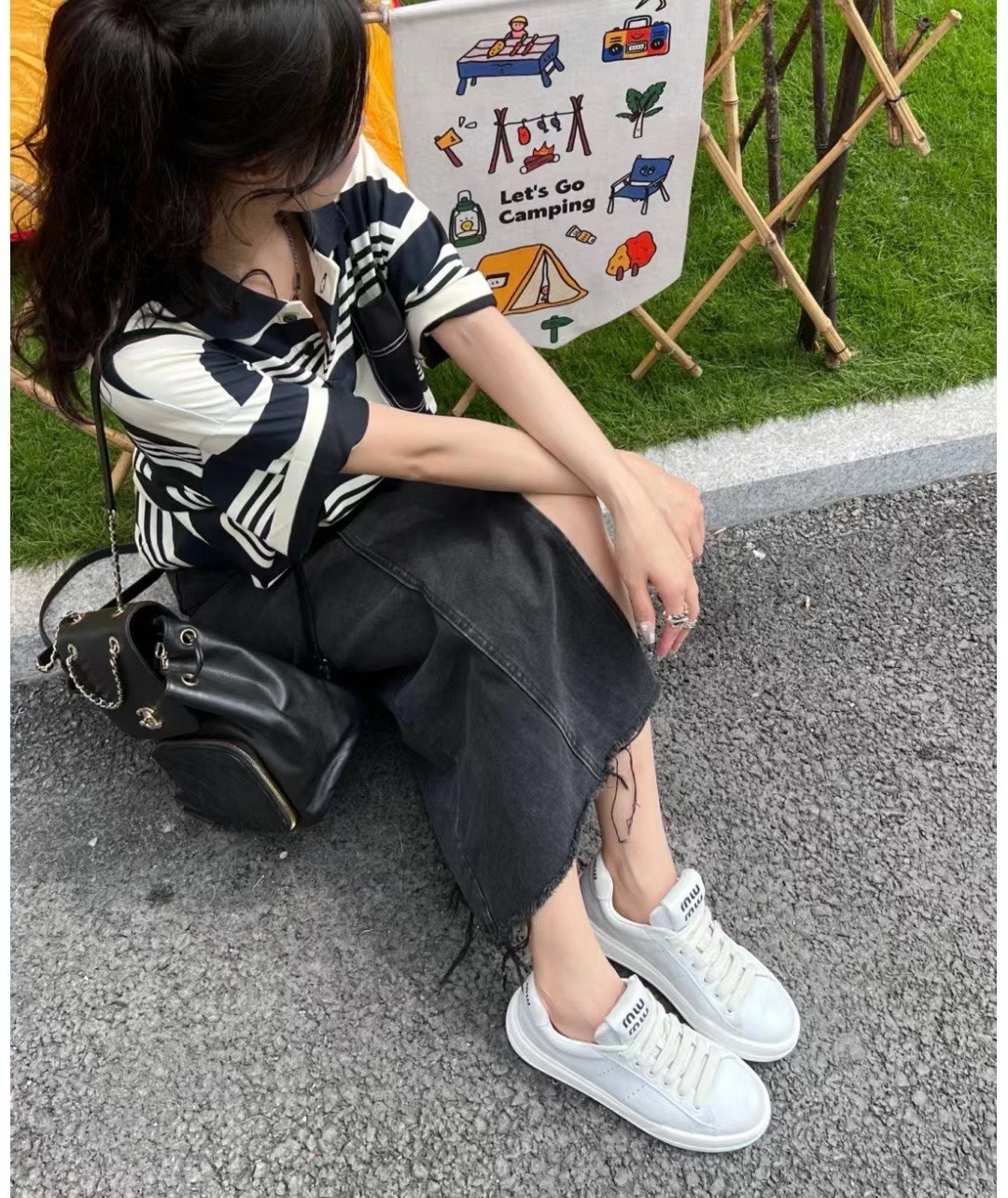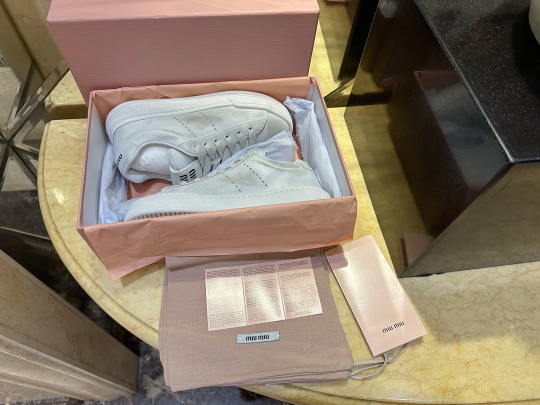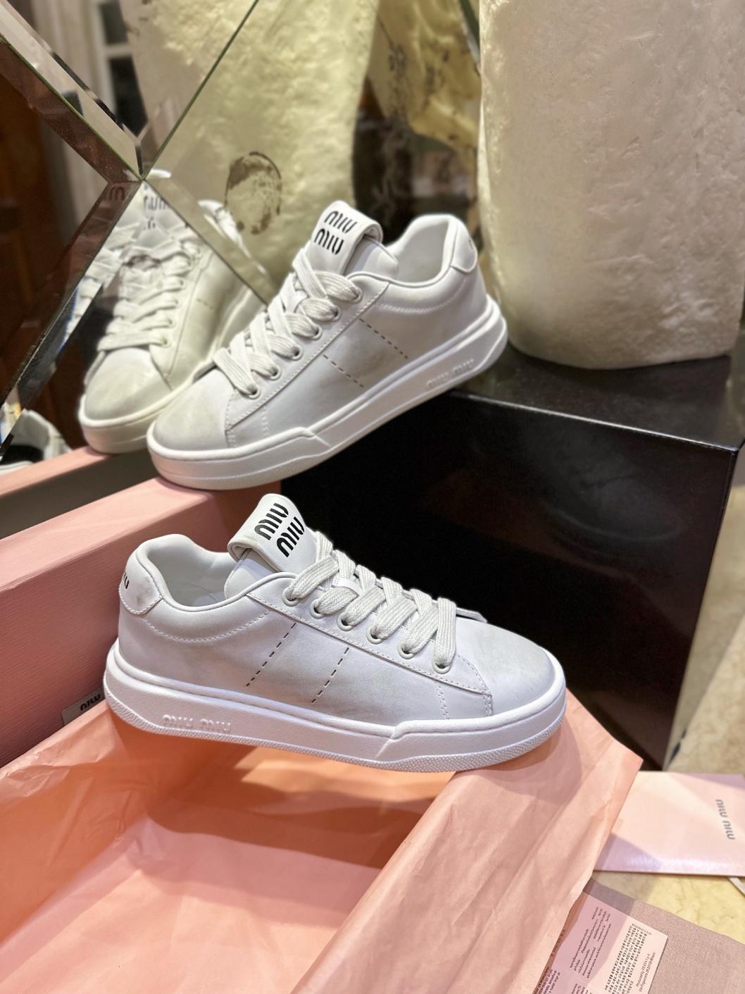 미우미우 옥스포드 스니커즈 빈티지 구제 소가죽면+부드러운 양가죽 발받침 소녀스러움+구제 빈티지한 멋스러움 청춘 무드감