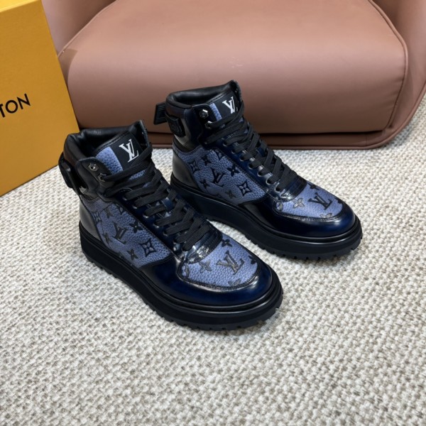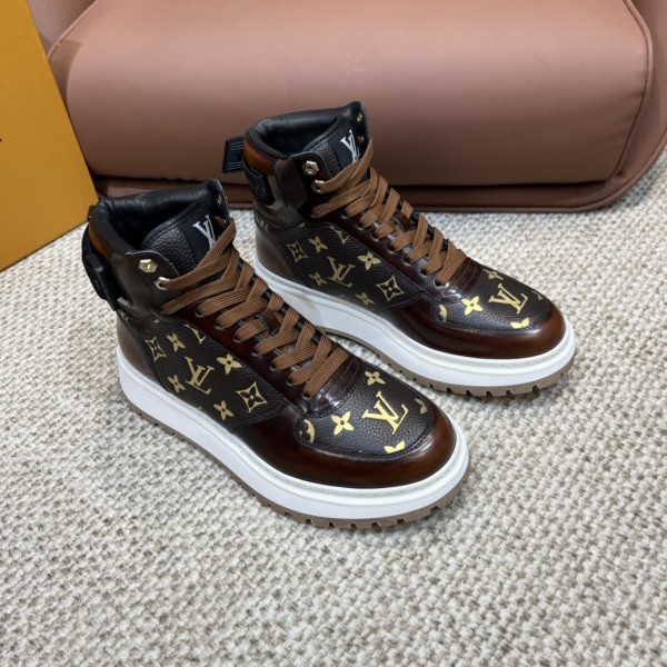 루이비통 럭셔리 남성 아베쎄 운동화 수입 송아지 가죽 표면, 가죽 표면 엠보 로고 안감 칼라, 선명한 스티치로 전체적인 구조를 풍부하게 함 LV 레터링과 루이 로고 엠보싱 슈즈 안쪽에는 수입수로 소가죽을 염색하여 편안한 발감을 제공함