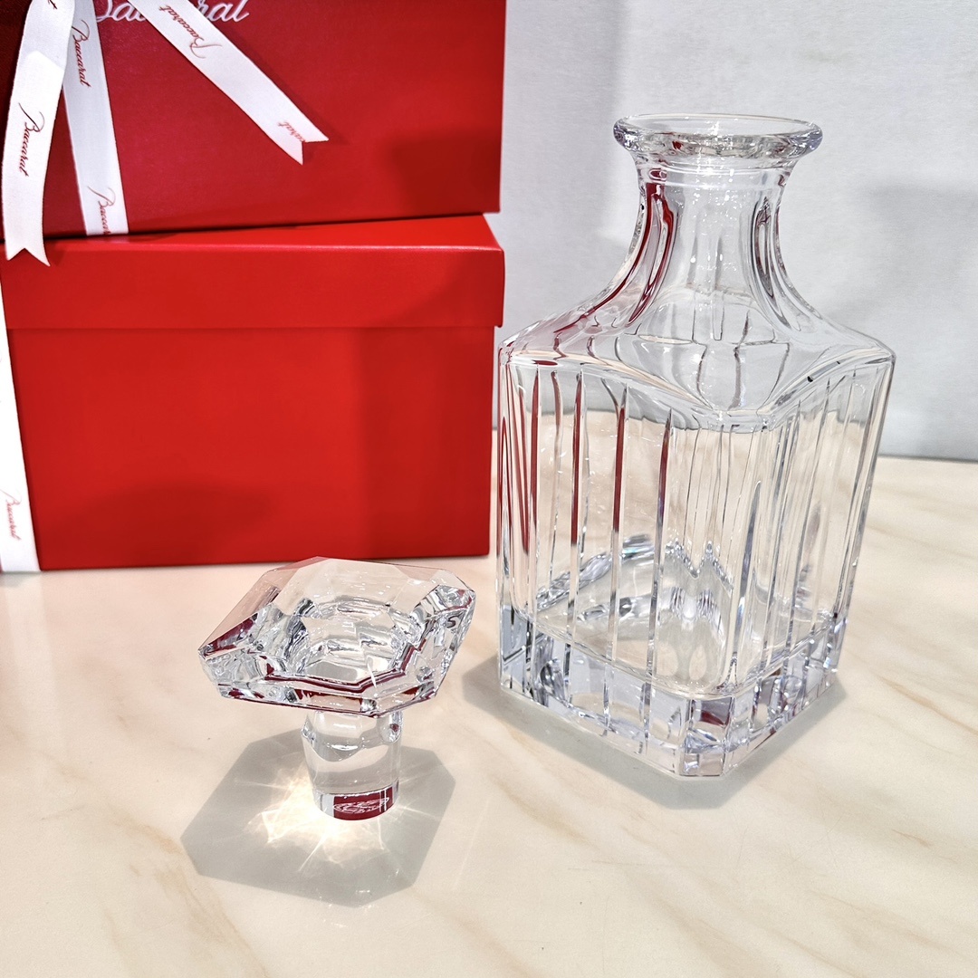 바카라 하모니 컬렉션 위스키 사각병 앙상블 라인은 수직의 바 패턴으로 입체감을 살린 것이 특징이며 이 라인에 적용되어 모두 아이템이 있음 다이아몬드 모양으로 커팅된 병마개는 기하학적이고 복잡한 디자인의 술병을 더욱 빛나게 함 우아한 라인이 술병의 바깥 가장자리를 따라 이어져 바닥부터 어깨까지 입체감과 질감이 돋보임 사이즈 : 높이 25.5 병바닥 9.3 병뚜껑 7cm 900ml