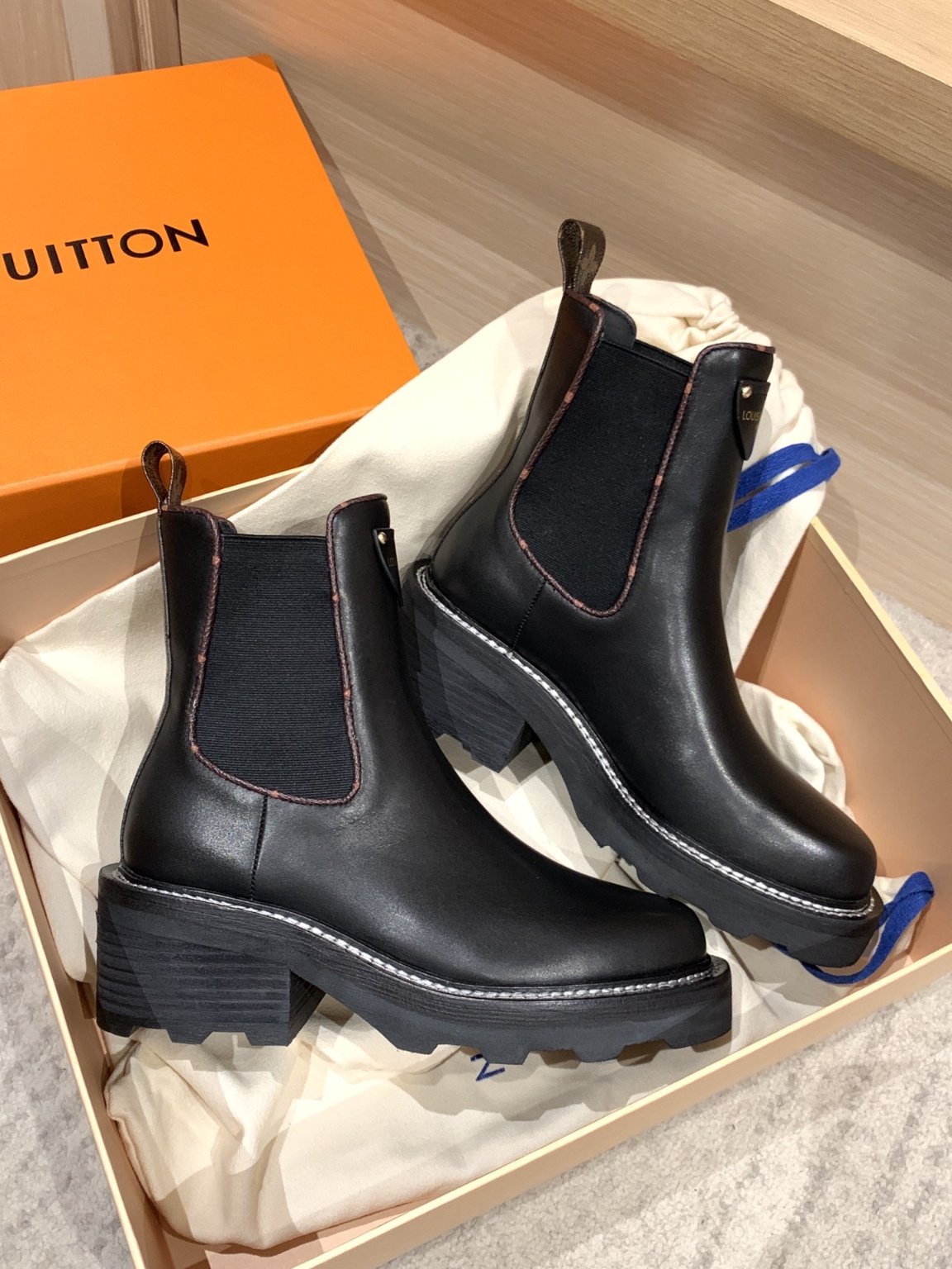 루이비통 첼시 부츠 오리지널 정밀 CP, 무한접근의 슈즈의 극치 독창적인 공법 제작, 첼시 스타일 특선 프리미엄 소가죽 원단 안쪽 소가죽, 양말은 스판 울, 서클 사이드 로고 굽높이 4cm, 독점 프라이빗 몰드 고무 발포 리얼 가죽 콤비 대창 비시판 EVA 콤비 대창