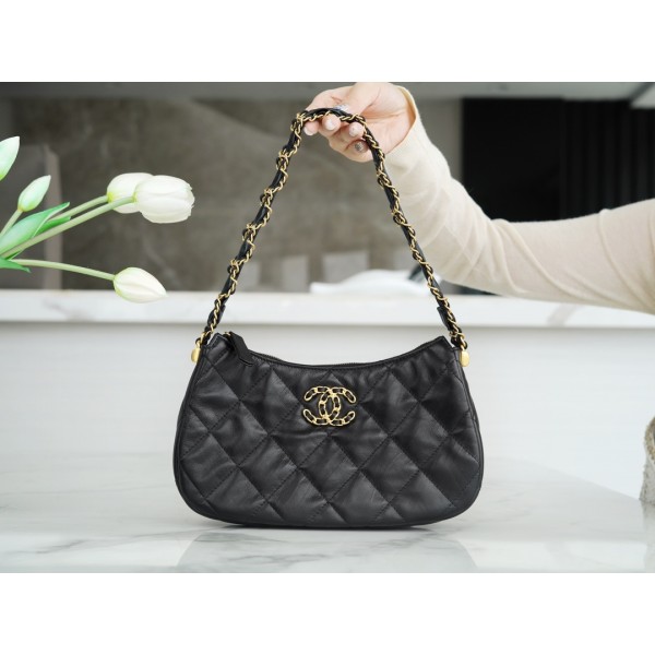 23K 19 호보백 스몰 블랙 정품가죽 모델번호 AS4422 또 다크호스 빈티지 셔링 소가죽 가죽으로 클래식한 19가죽 체인 더블 c버튼 어깨끈의 편안함과 디테일을 빈티지하게 잡아주어 영혼에 직격탄 매치의 달인이 되세요 사이즈:13*23*5cm