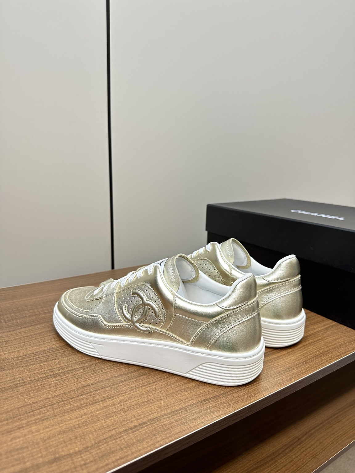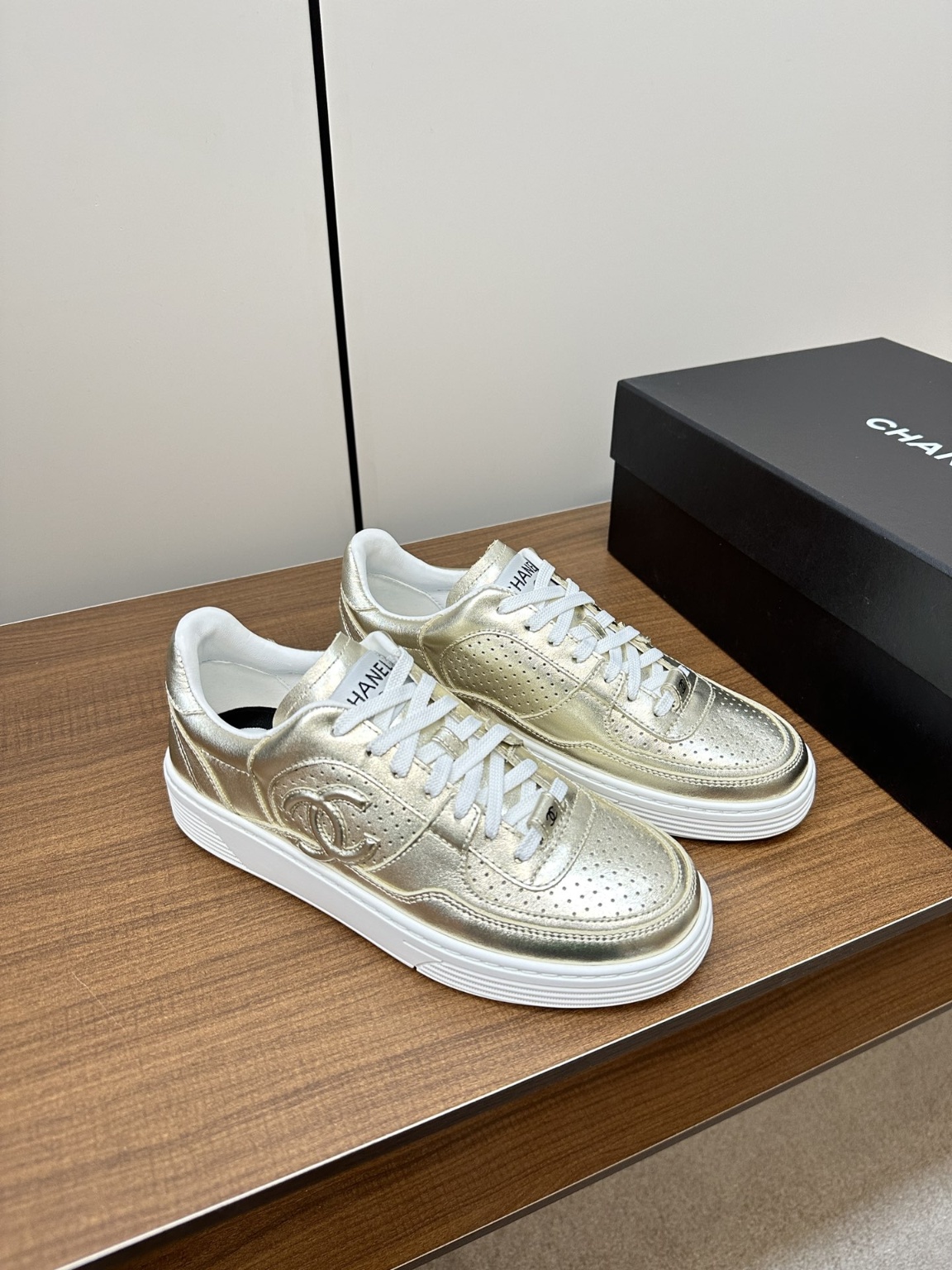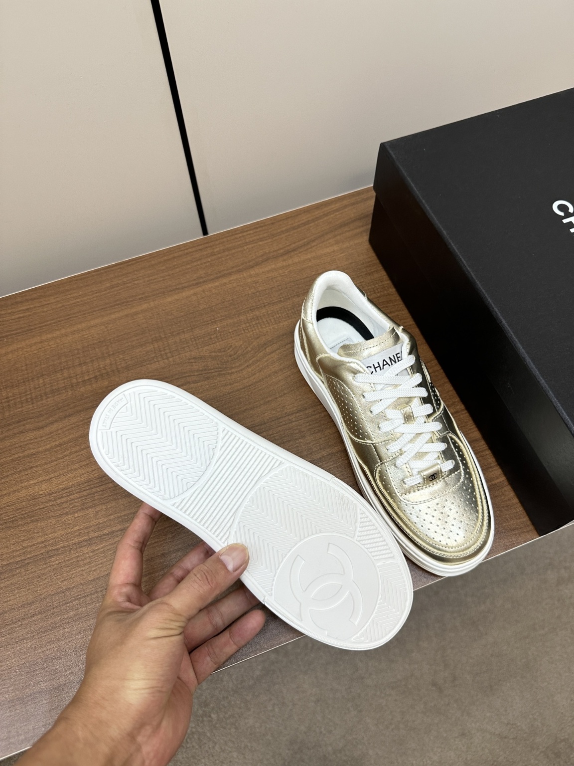 2023 샤넬 팬더슈즈 샤인 더블 로고 컬러 콤비 메탈 운동화 샤넬은 이번 시즌 새로운 컬러에 러닝화를 매치하여 각 블로거들의 미니홈피를 뜨겁게 달궜음 소재: 신발 겉면 메탈 송아지 안감: 양가죽 패치 그물 TPU 미끄럼 방지 가볍고 바닥이 높아짐