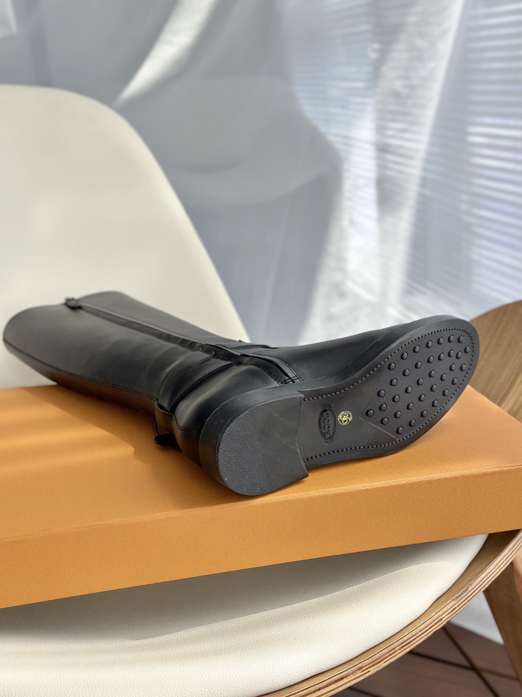토즈 23ss T 버클 블랙 사이드 지퍼 롱부츠 최상급 버전, 다리라인을 잡아주며 오리지널 왁스 소가죽 느낌이 일품 누드 레그에 슈트를 매치해 깔끔하고 시크한 룩 오리지널 수입 왁스 느낌의 소가죽 면 오리지널 맞춤 TPU 베이스 바닥높이: 3.0cm, 통높이: 40.5cm
