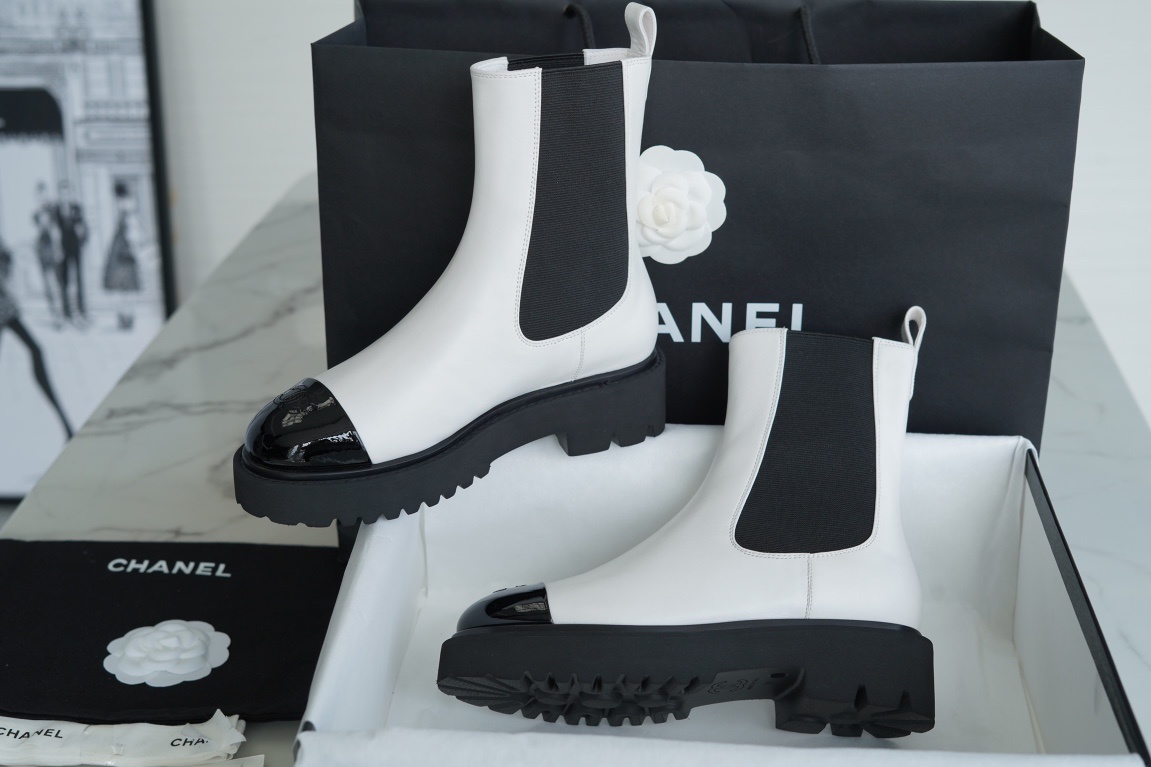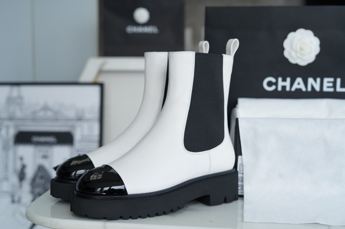 통굽 흑백 콤비 앵클부츠 안과 밖 모두 질감이 가득해요 양가죽의 섬세한 에나멜 광택 말이 필요 없는 고급스러움 무심코 세련된 느낌을 주는 아이템