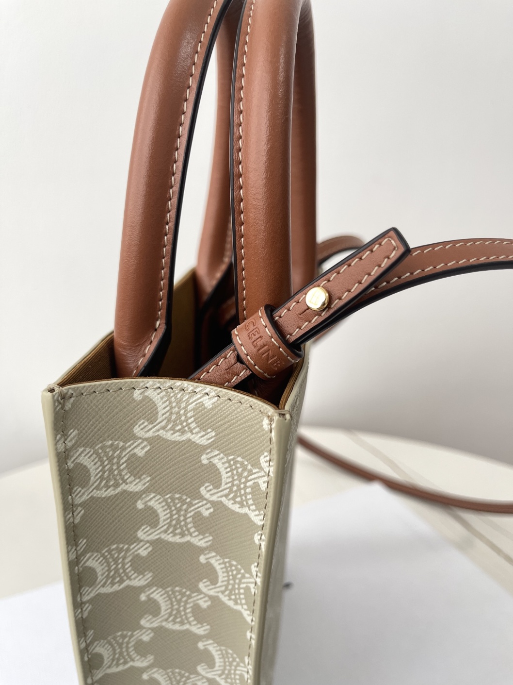 CE가 새로운 컬러 베이지 브라운, 큰 로고는 없음 미니 사이즈의 토트백이 새롭게 출시 이 가방은 정말 너무 귀엽고 세련된 가방 사랑스러우면서도 빈티지한 느낌 패션의 조화가 정말 멋짐 수입 캔버스 프린트 코팅으로 비에 대한 방수가 가능 긴 어깨끈으로 토트/숄더/크로스까지 만능 정말 작지만 실용성이 뛰어난 tote로 손안에 넣을 가치가 있음 모델 번호: 194372 사이즈 : 17×21×4cm